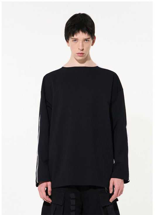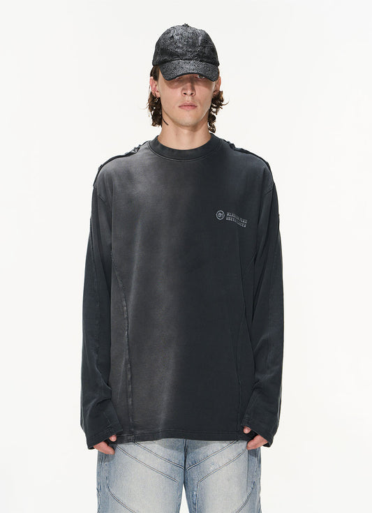 Raw-edge Gradient Loose Round Neck Long Sleeve T-Shirt