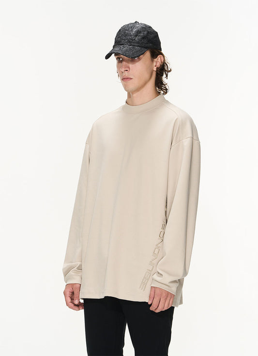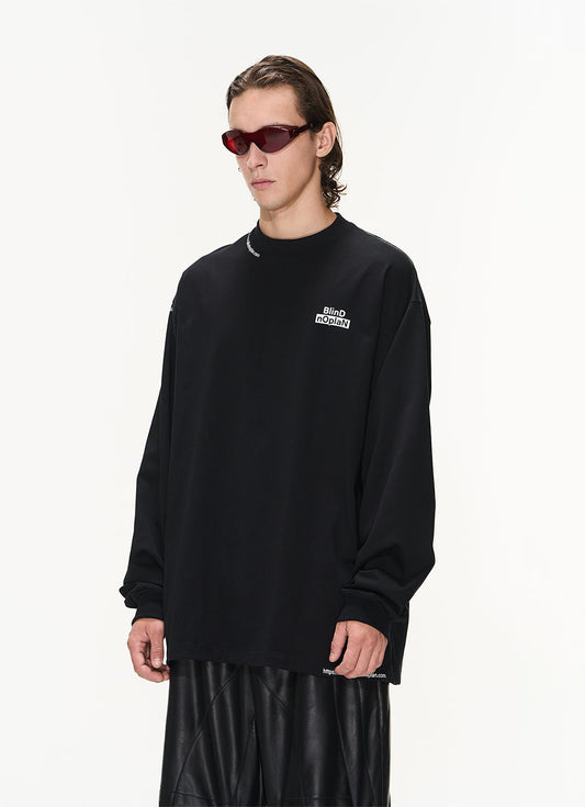 Basic Embroidery Round Neck Long Sleeve T-Shirt