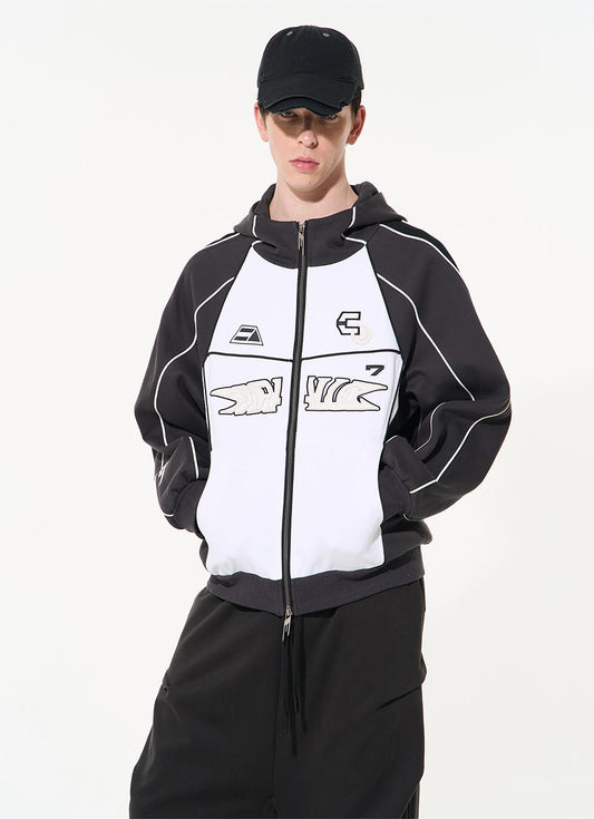 Contrast color stitch embroidered hooded sweat