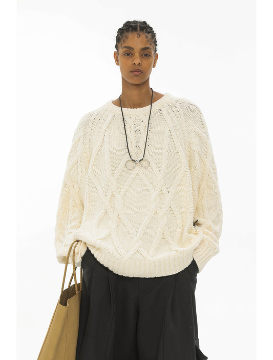 Retro lazy twist thick needle pullover sweater