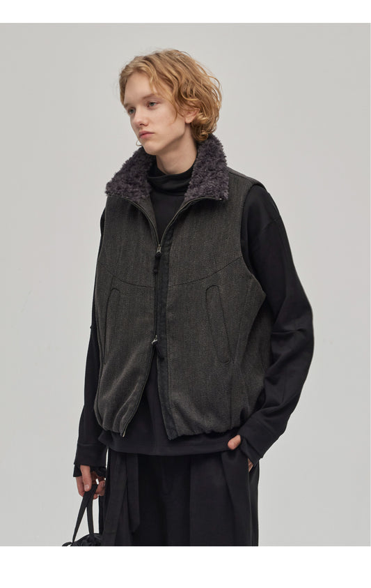 Sold outWool Stitch Fur Collar Vest
