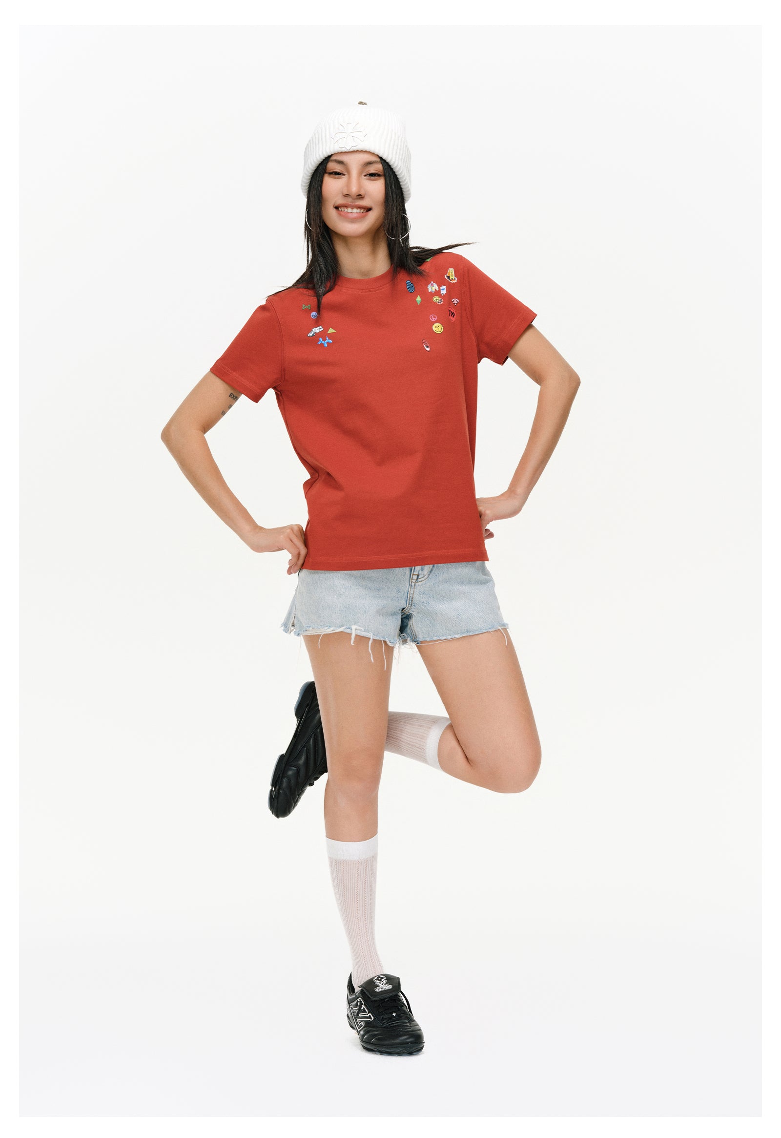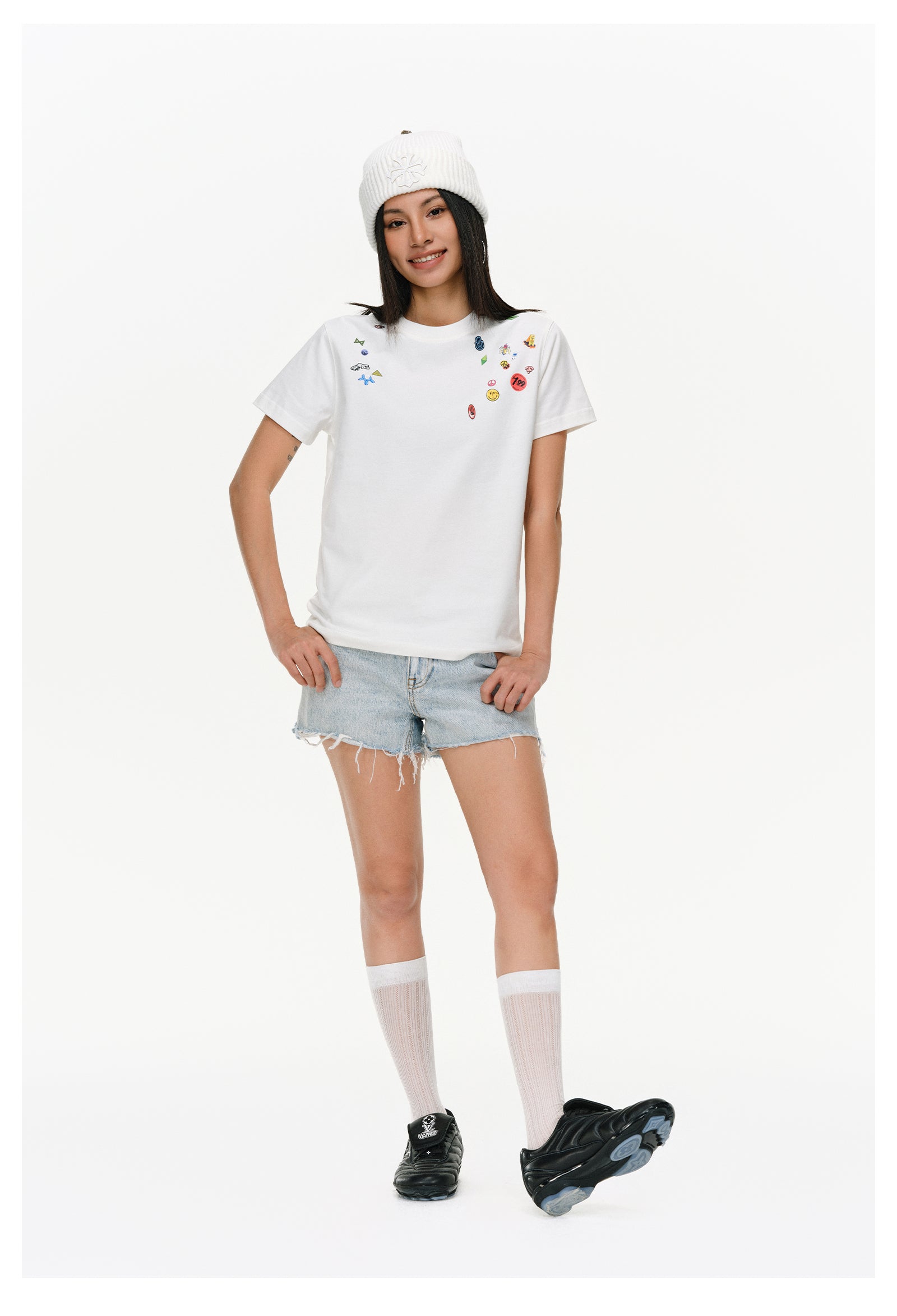 Thick sticker print T-shirt