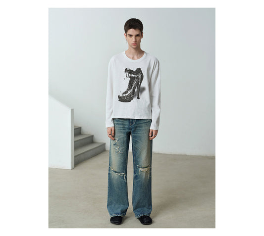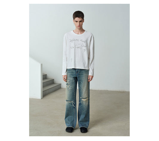 Vintage Wash Loose Straight Leg Jeans