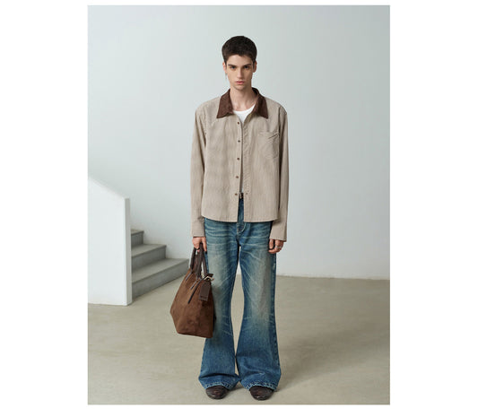 Suede Trim Collar Shirt