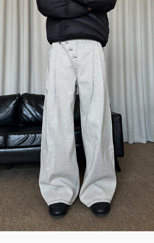 Asymmetrical Placket Button-Down Jeans