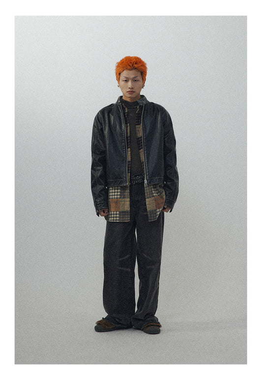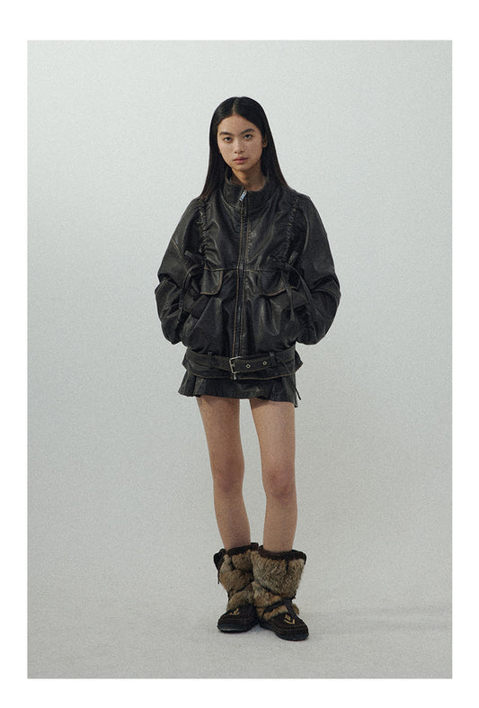 Unisex Large Silhouette Wide Shoulder Leather Jacket