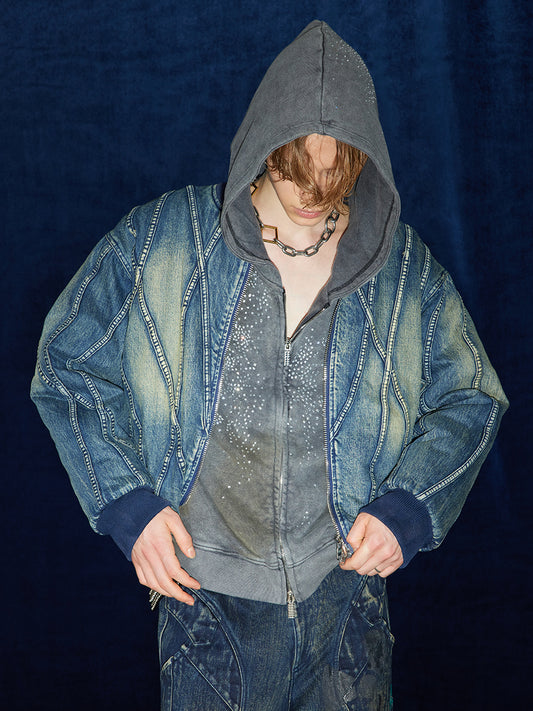 Deconstructed Damaged Denim Bomber Jacket