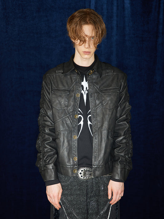Retro high-end pleated leather jacket