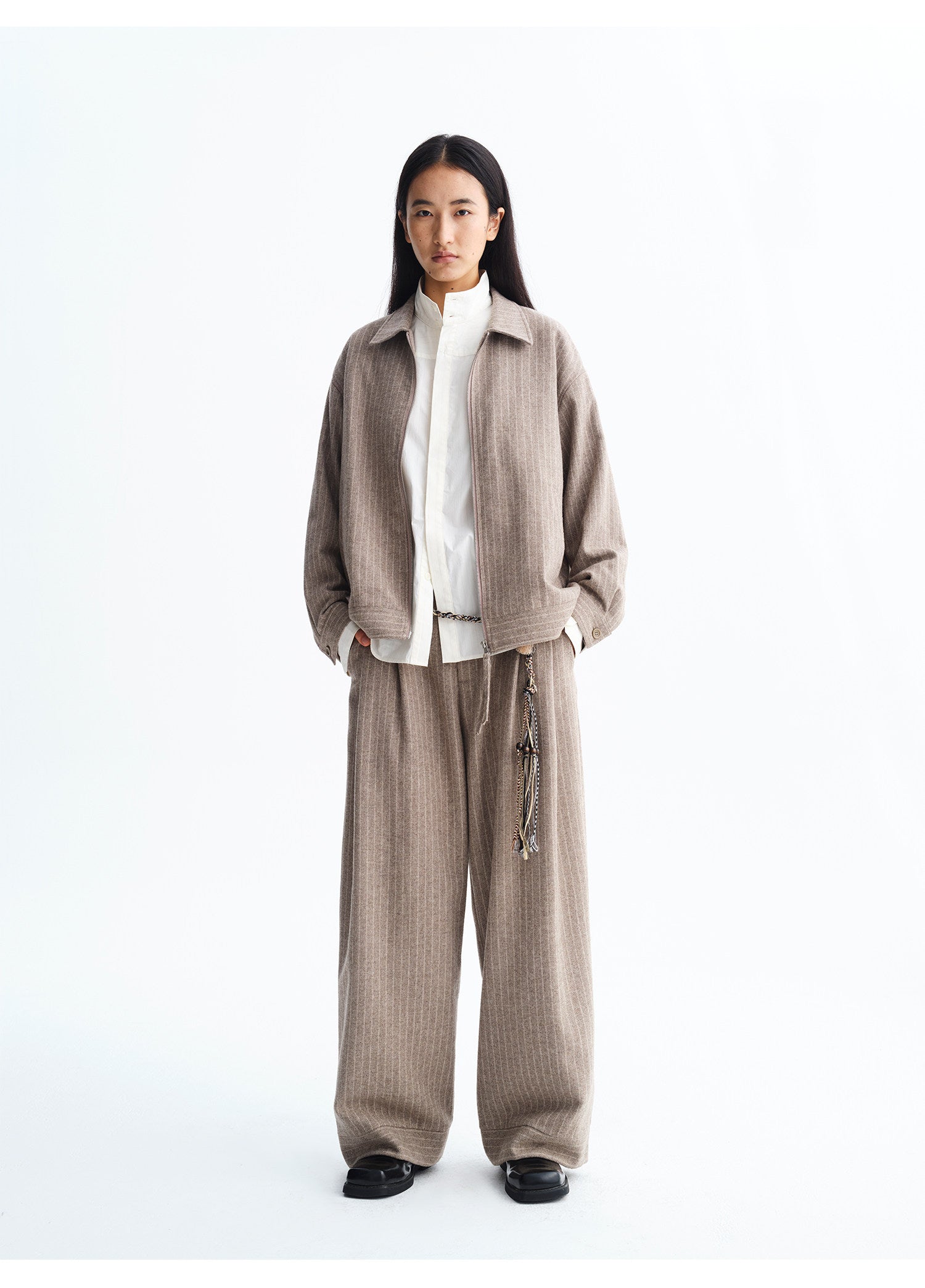 Wool Loose Straight Leg Casual Pants