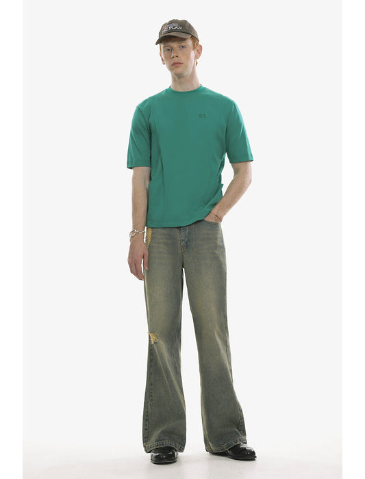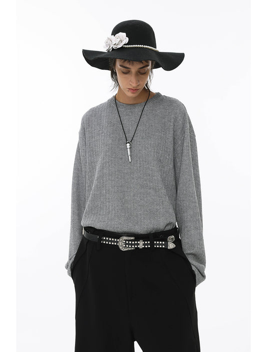 Maillard style inner clean fit knit basic round neck long sleeve T