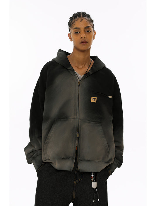 Maillard Style Eco-Friendly Distressed Dirty Fit Zipper Cardigan Sweatshirt