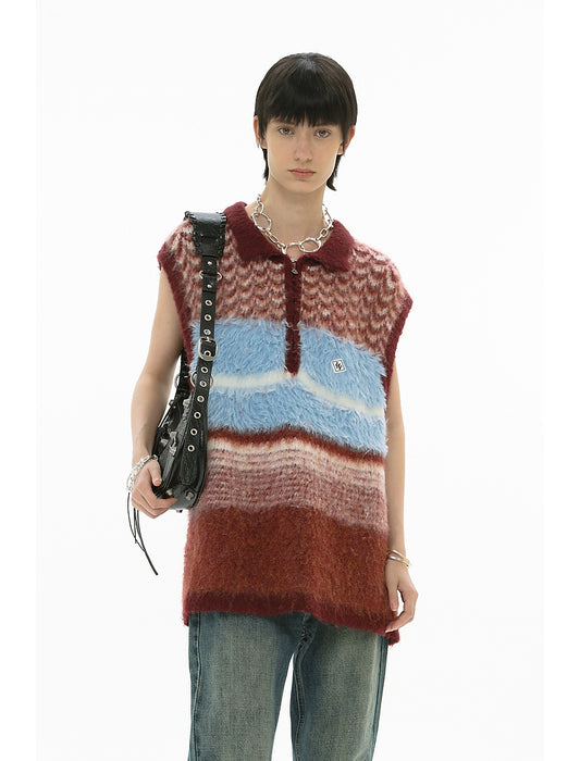 Plush Contrast Stripe POLO Collar Sweater Vest