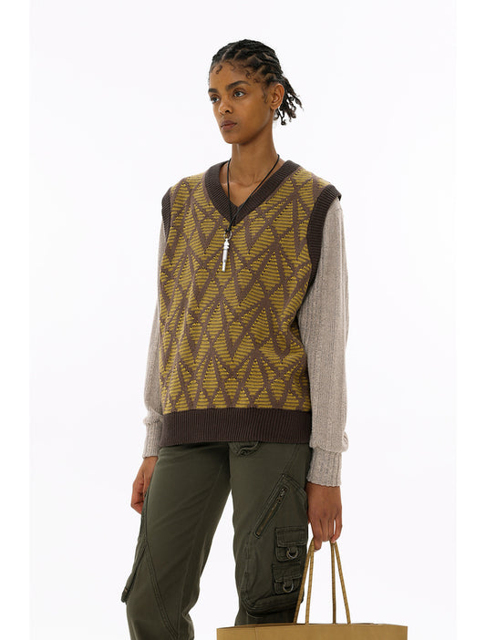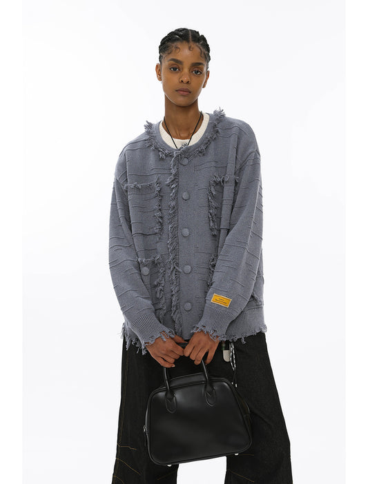 Maillard Style Tassel Jacquard Retro Loose Knit Pocket Cardigan Sweater