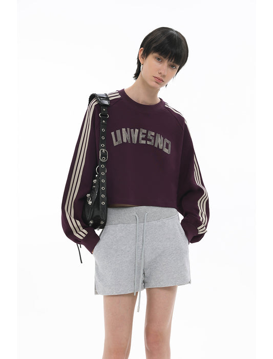 Sports Retro Textured Paper Print Clean Fit Couple Long Sleeve T-Shirt