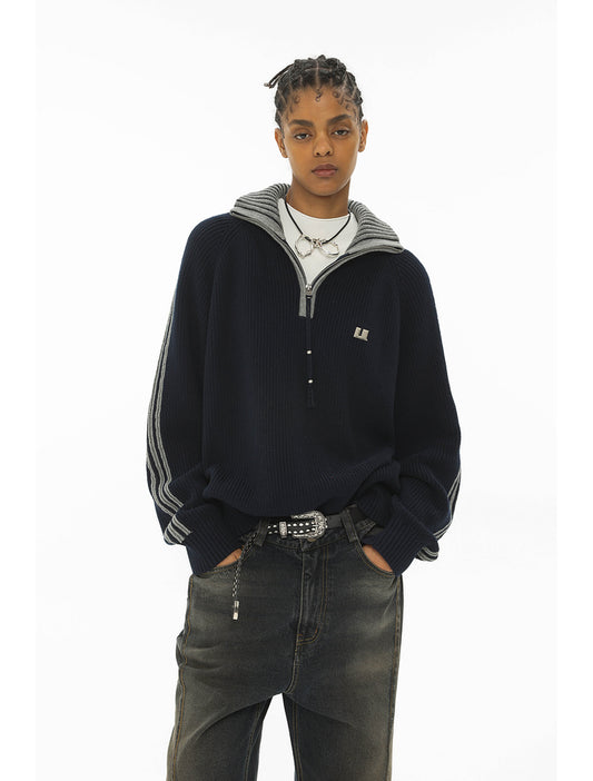 Zipper Turtleneck Retro Sports Lapel Sweater Sweater