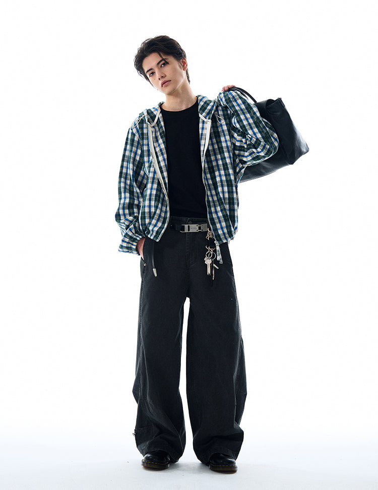 Checkered hooded shirt