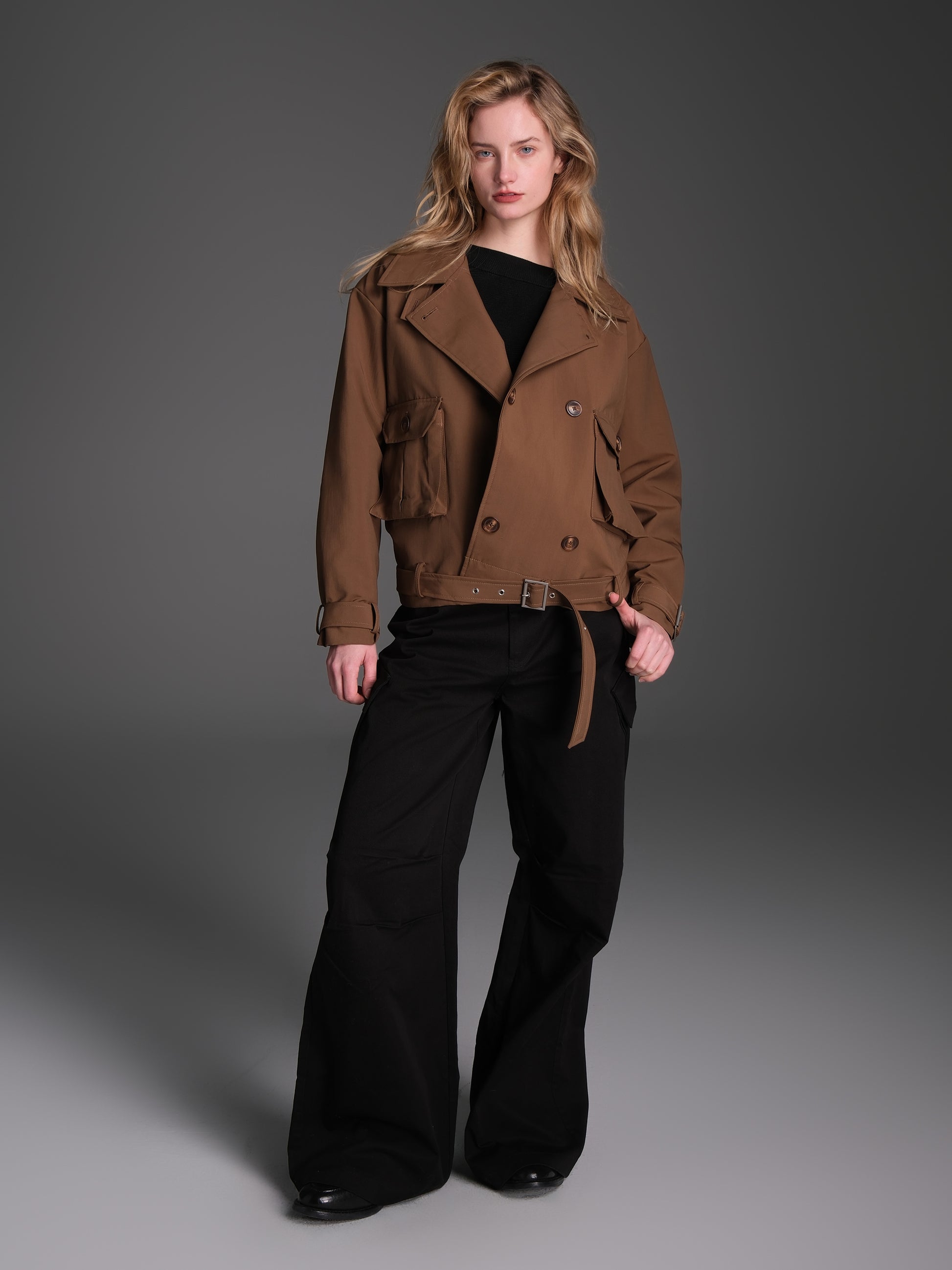 Diagonal Pockets Wide Casual Pants