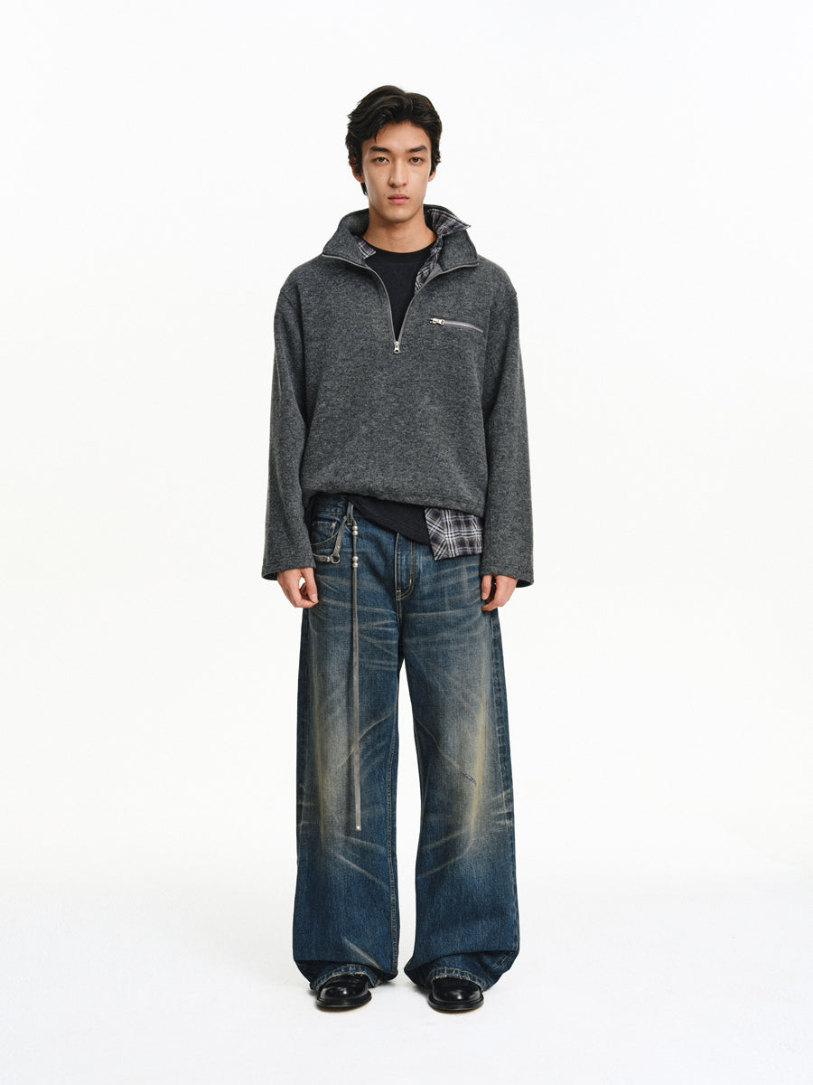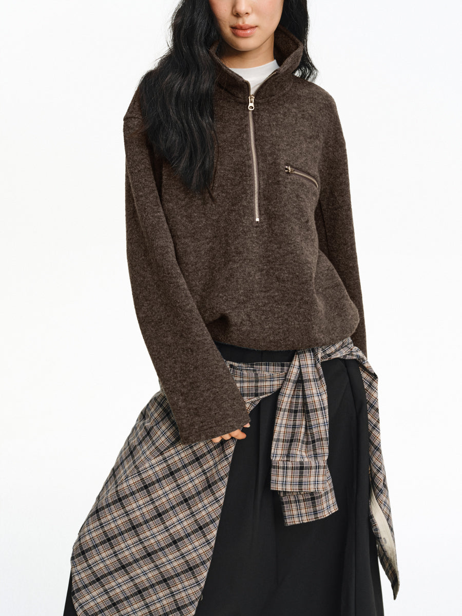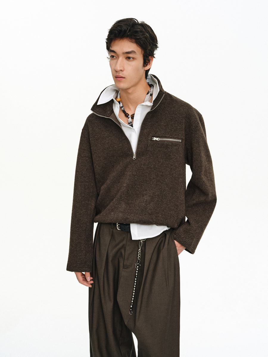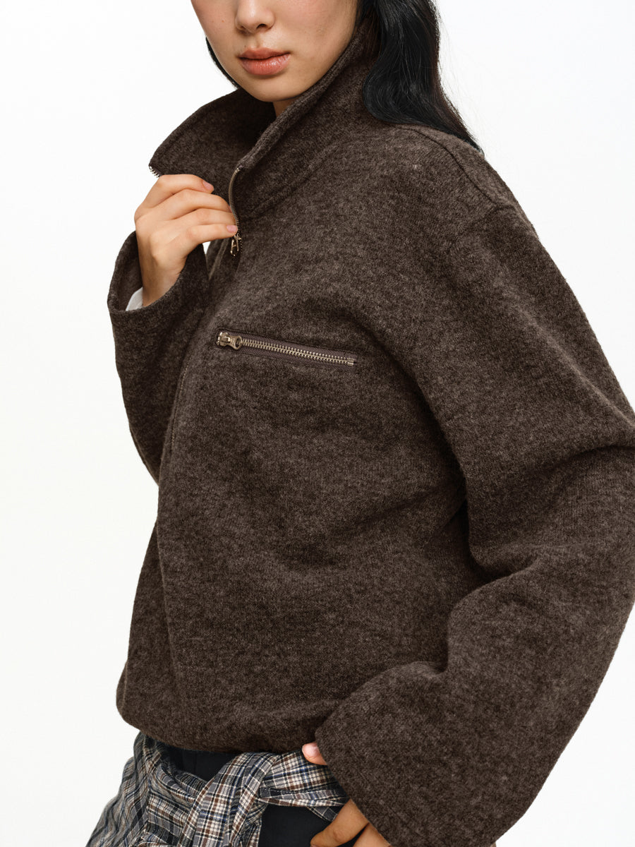 Stand Collar Zipper Shirt