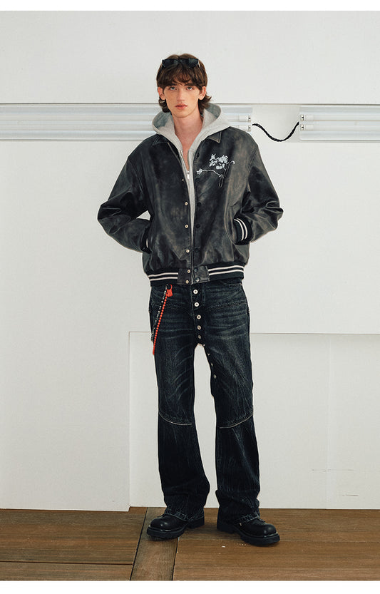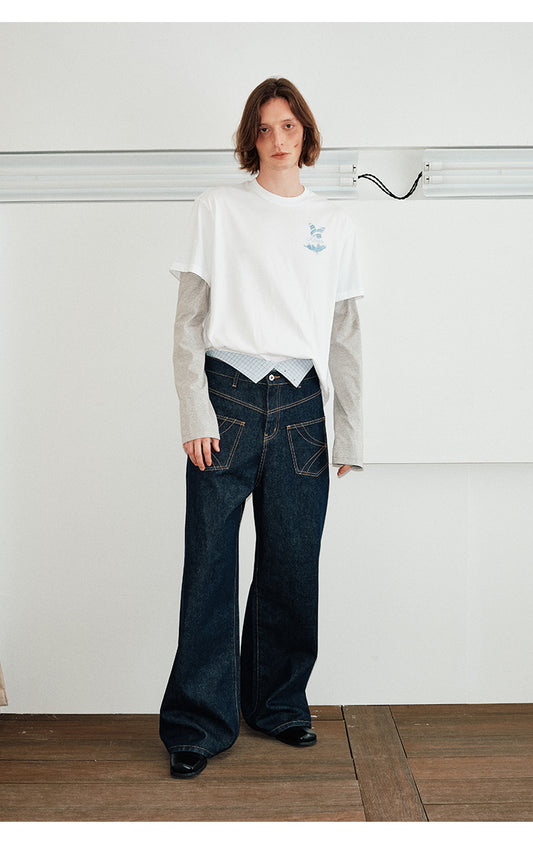 Reverse Wear Patch Pocket Loose Straight Jeans
