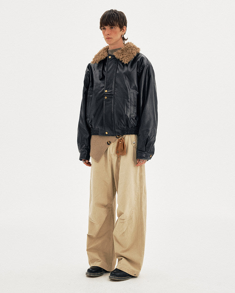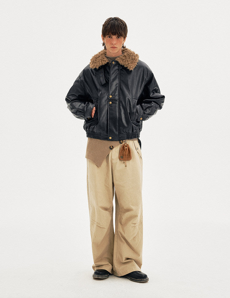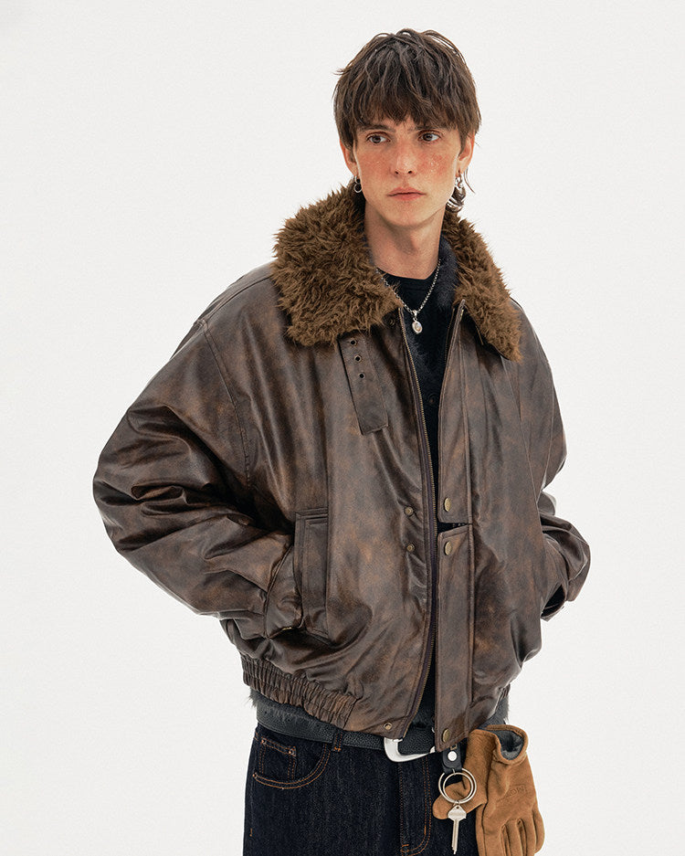 Padded Distressed PU Leather Jacket