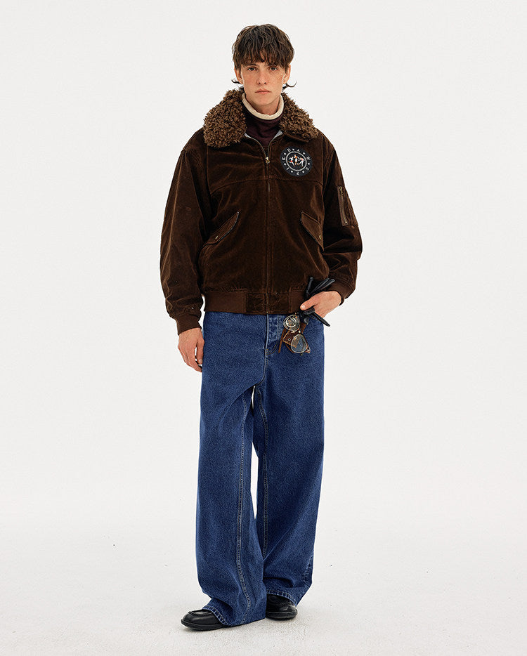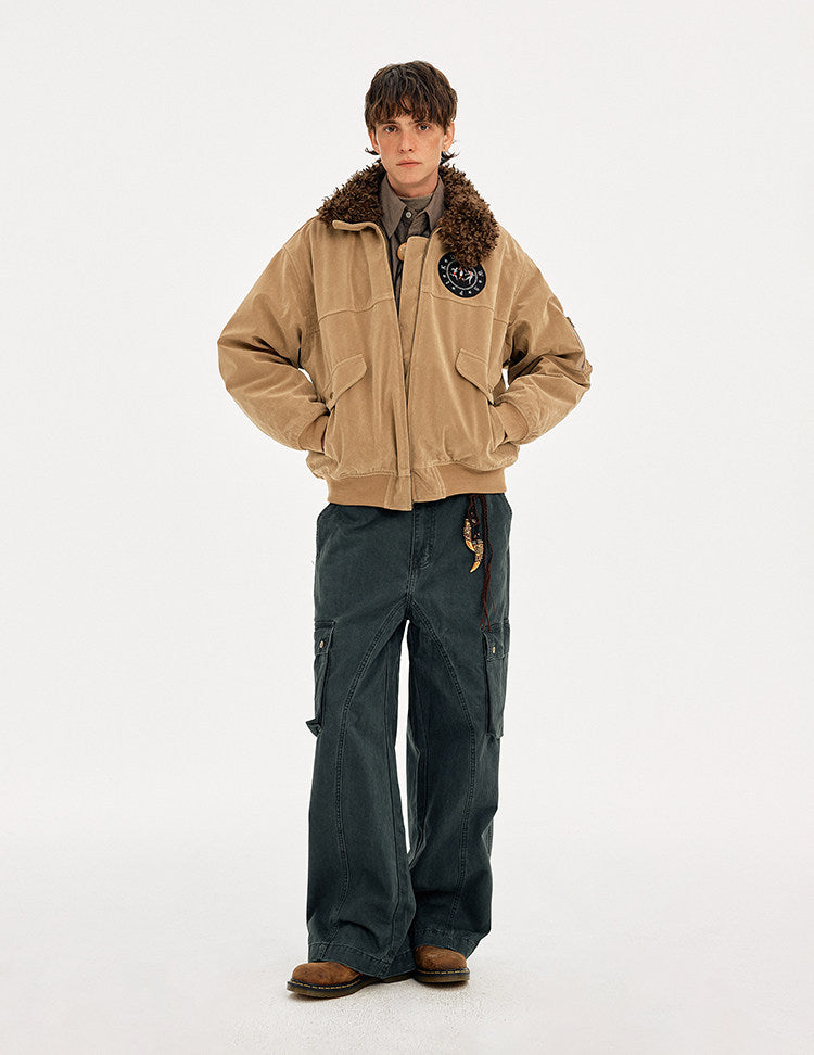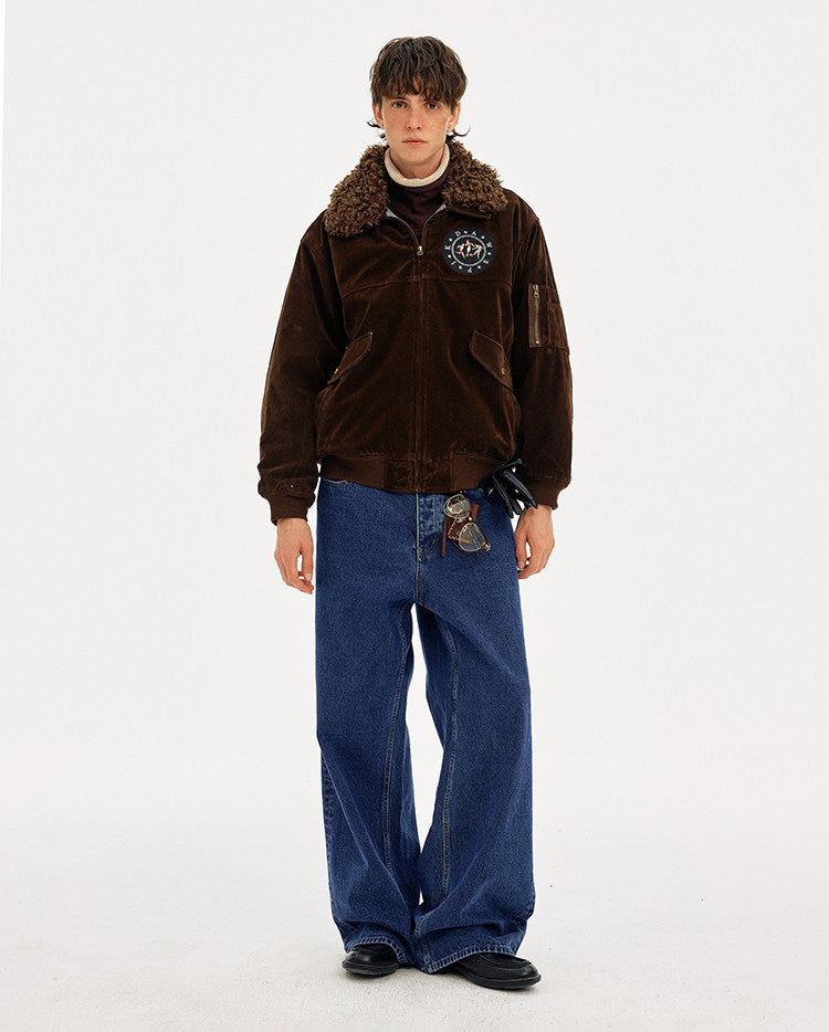 Retro Embroidery Faux Suede Collar Jacket