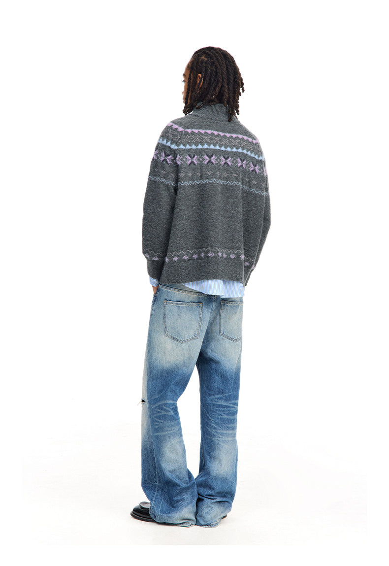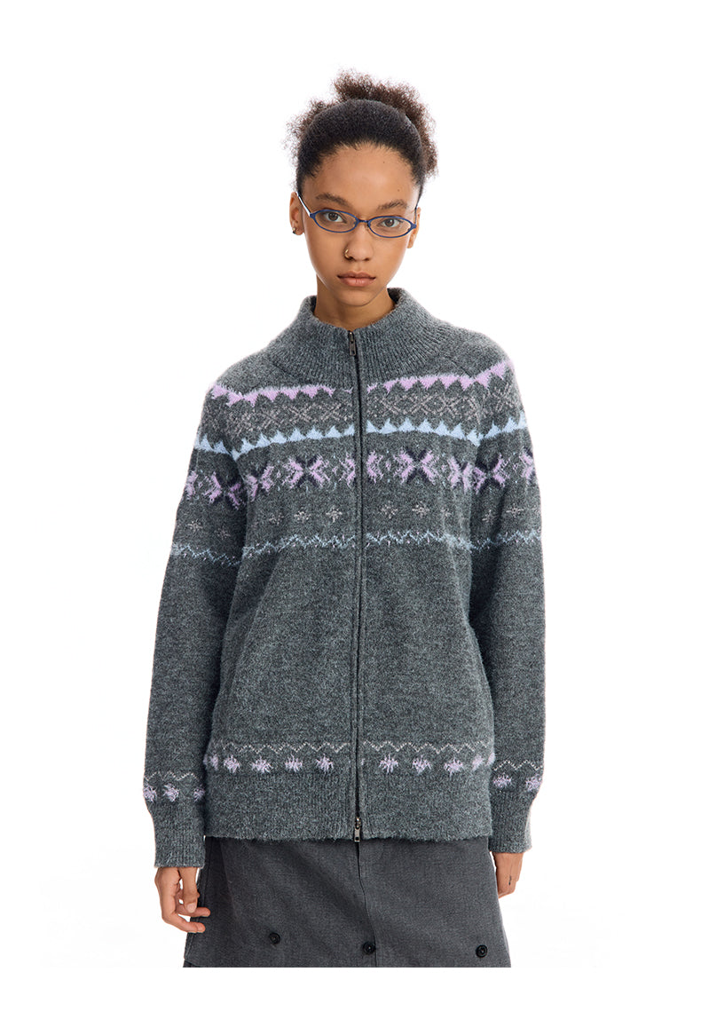 Crew Neck Zip Up Cardigan