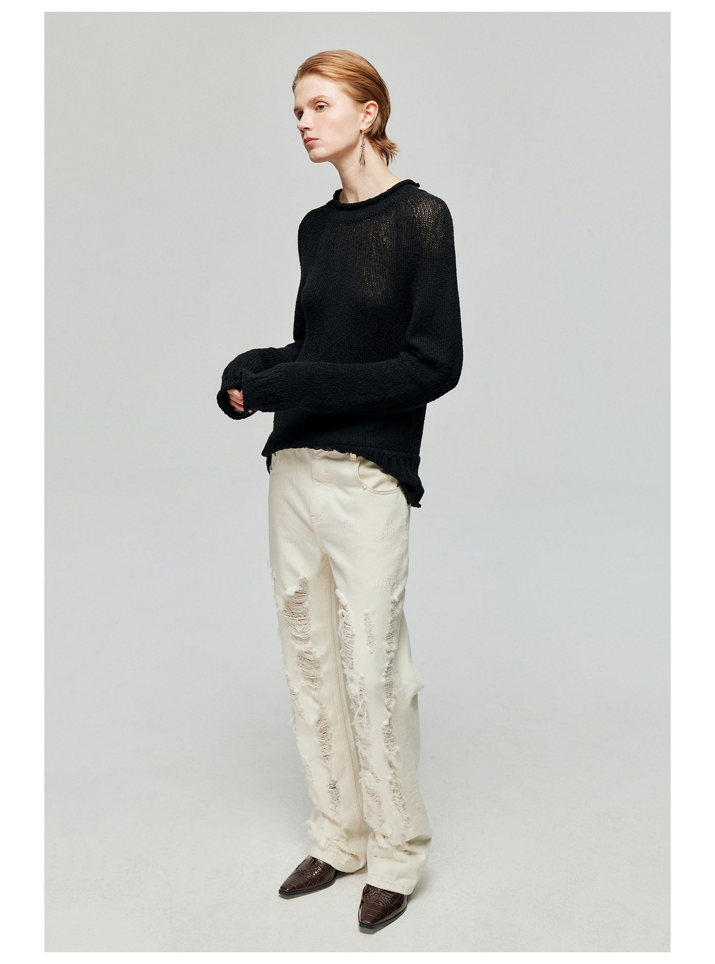 Damaged knife-cut straight jeans
