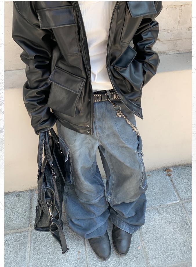 Detachable Dirty Dye Spray Denim Pants
