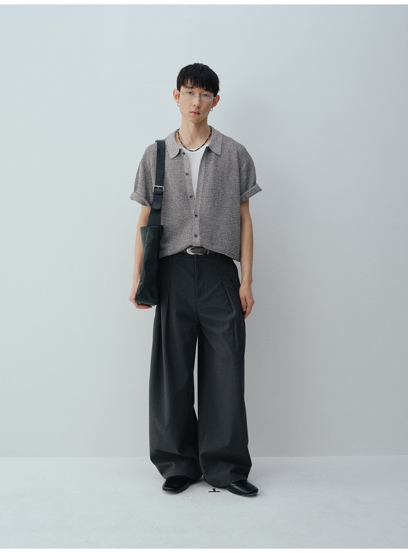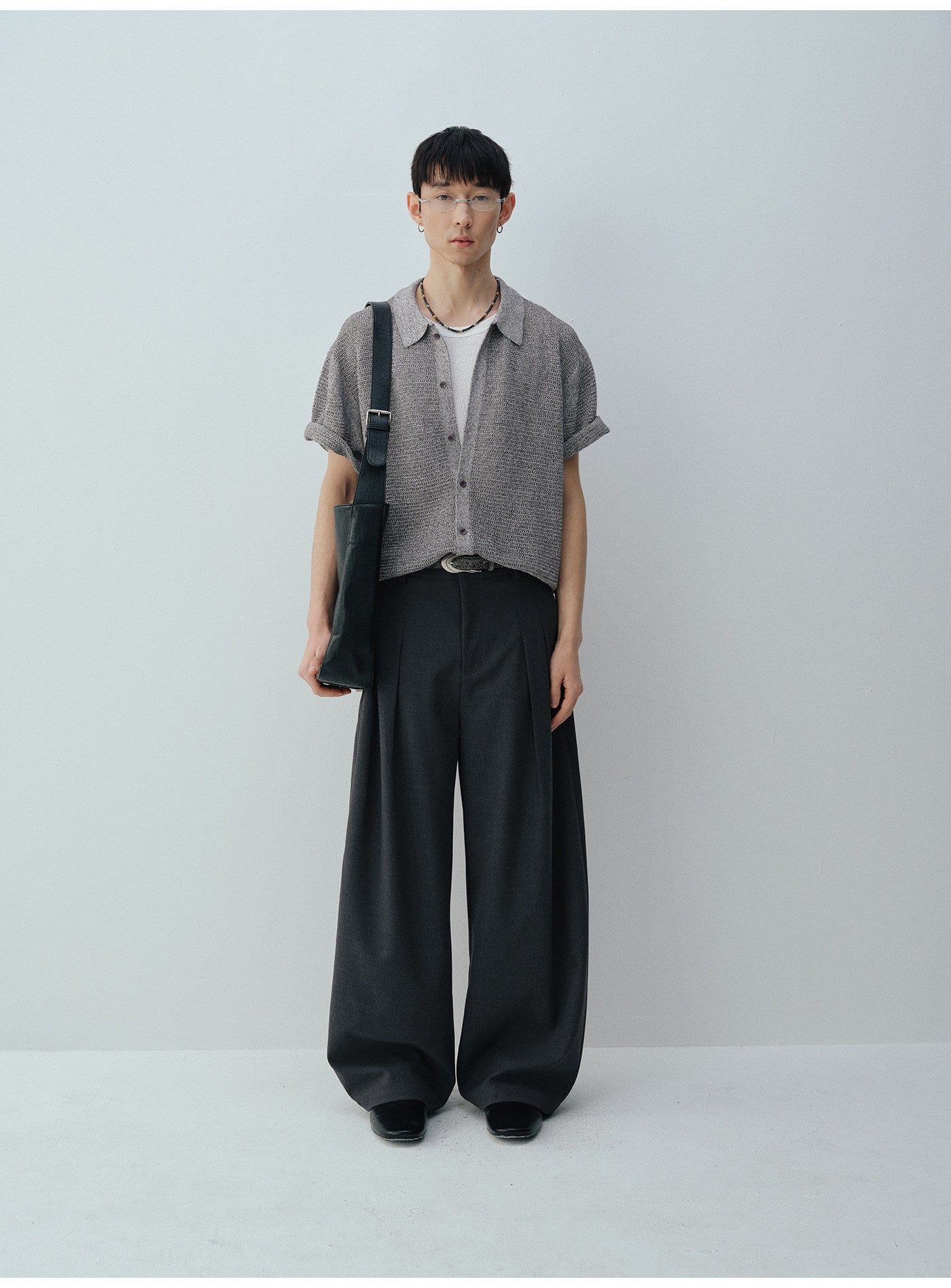 더블 플리츠 울 블렌드 캐주얼 팬츠