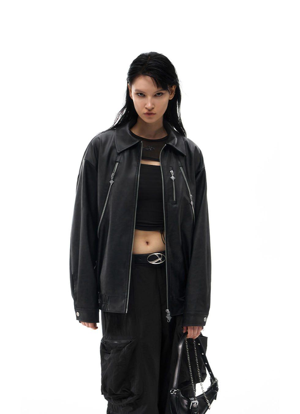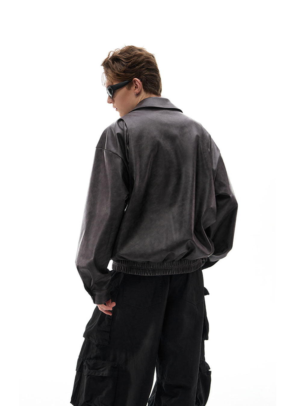 Loose lapel leather jacket
