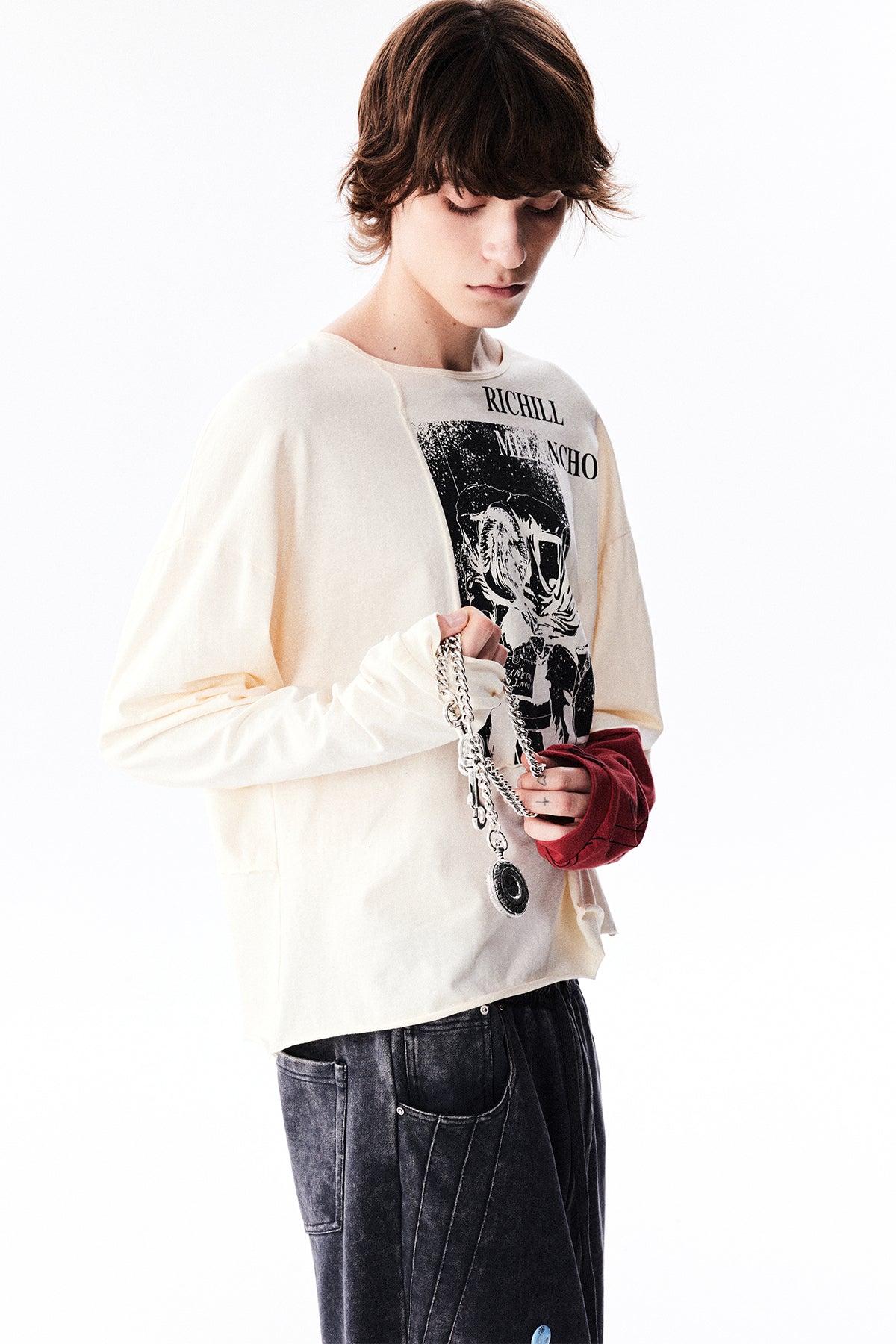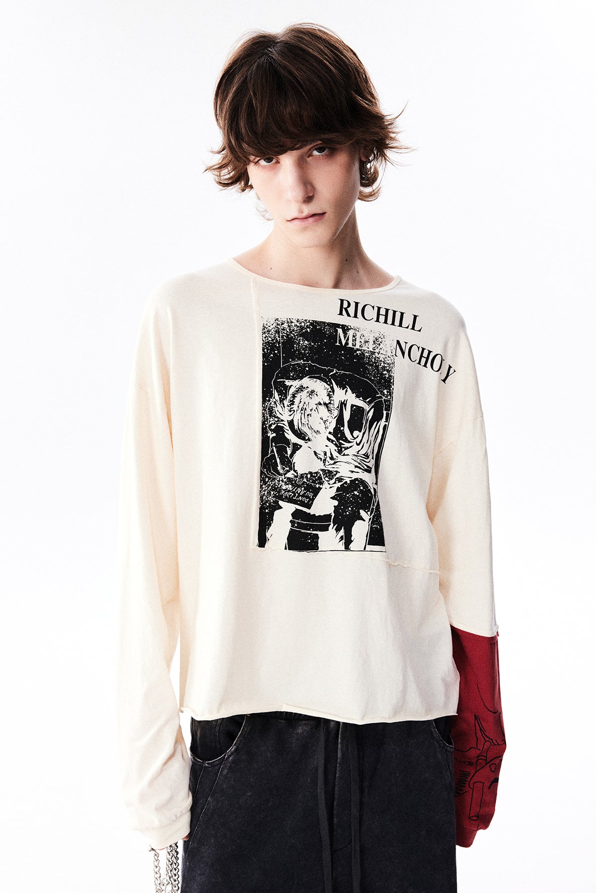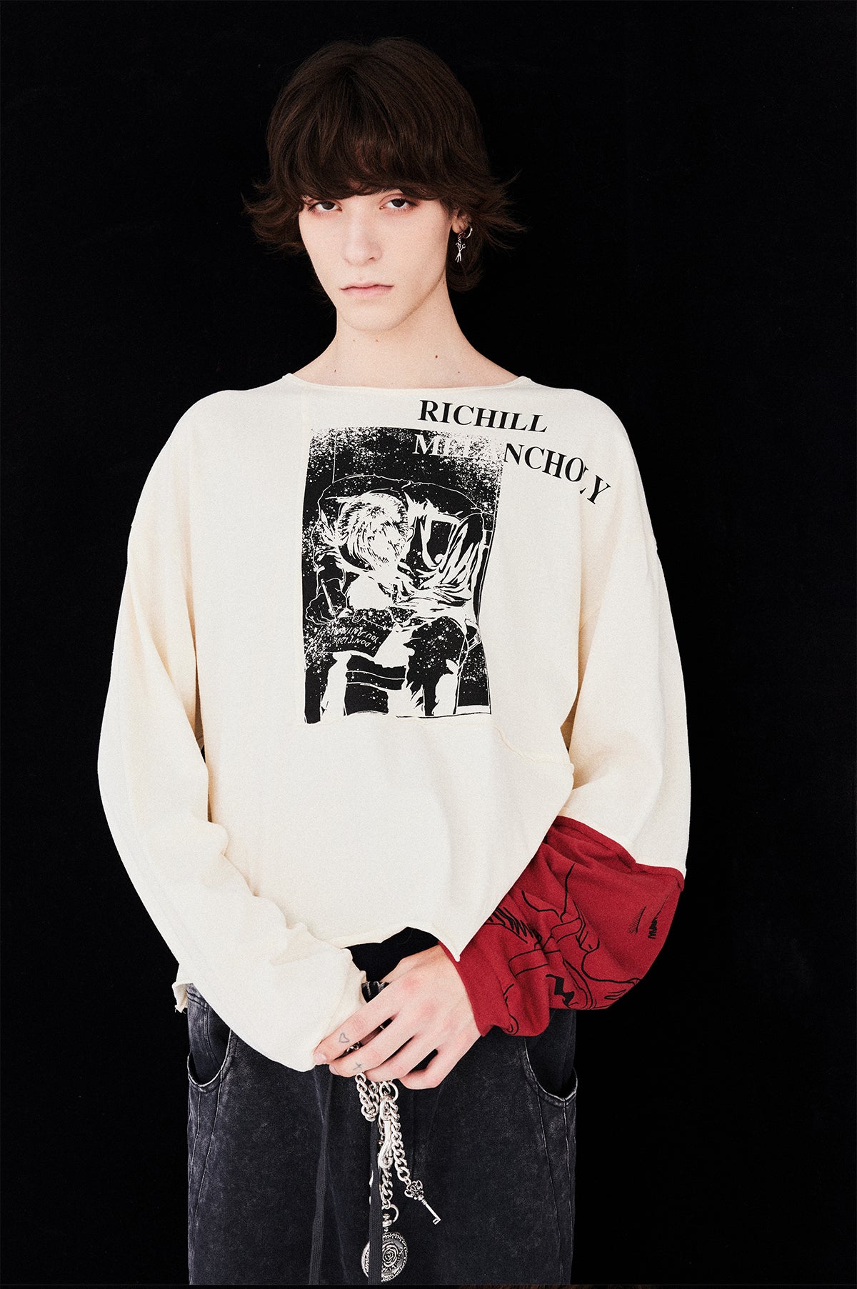 Red Sleeve Print T-Shirt