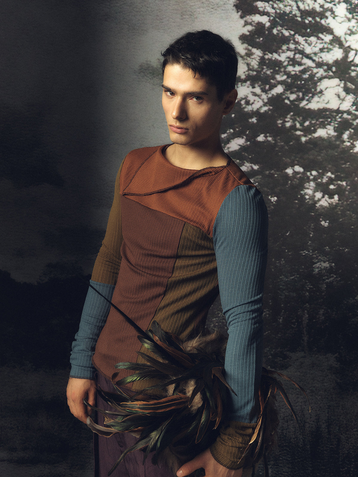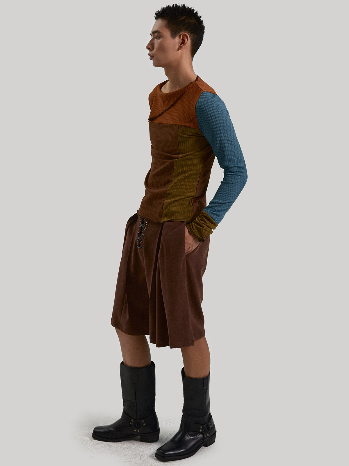 Retro Splicing Elastic Shirt