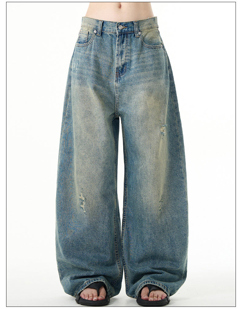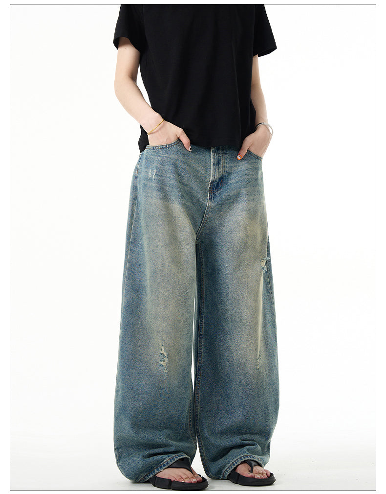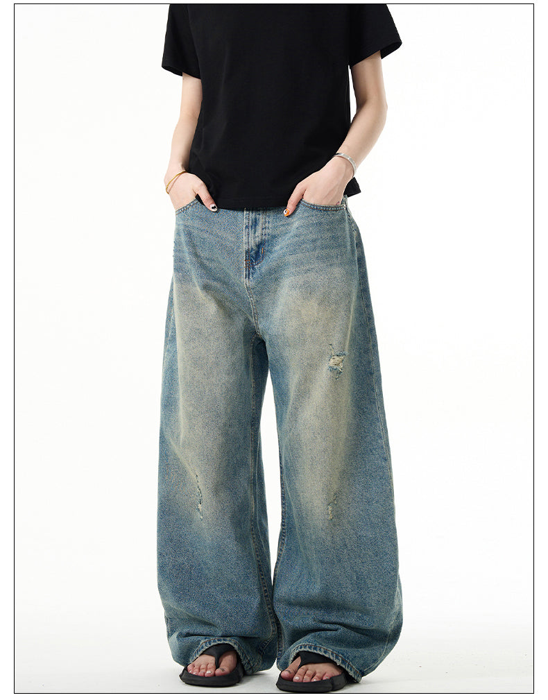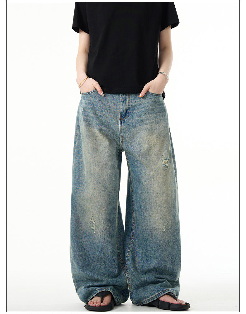 Unisex Retro Washed Wide Leg Jeans