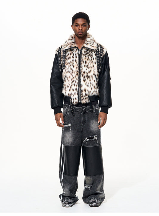 Leopard-Print Faux Fur Patchwork Sweatpants