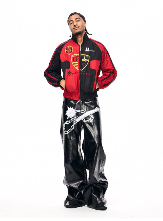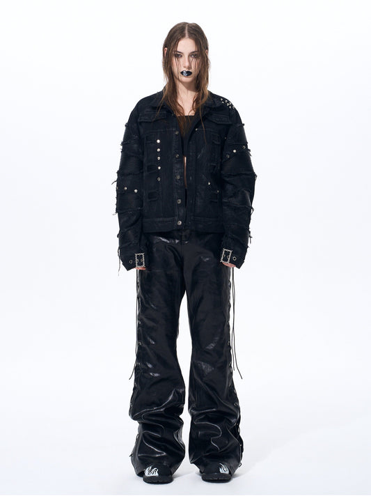 Flame Pattern Leather Jeans