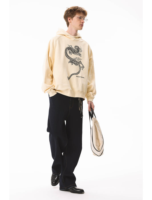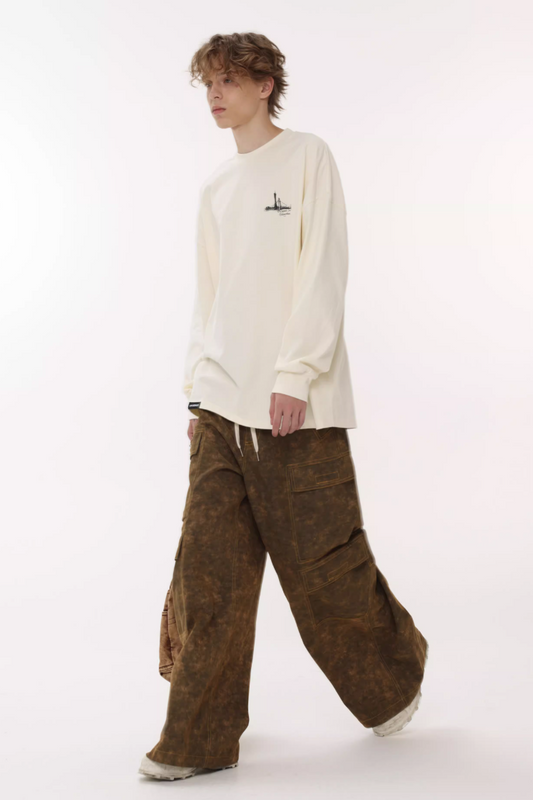 Dragon Print Washed Distressed Long Sleeve T-Shirt