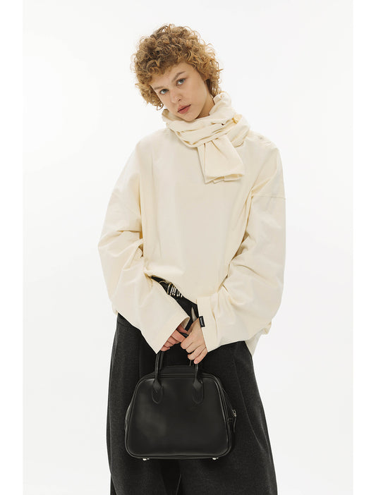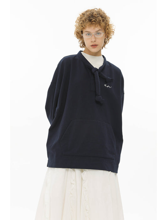 Scarf style diagonal button pullover and casual long sleeves T-shirt