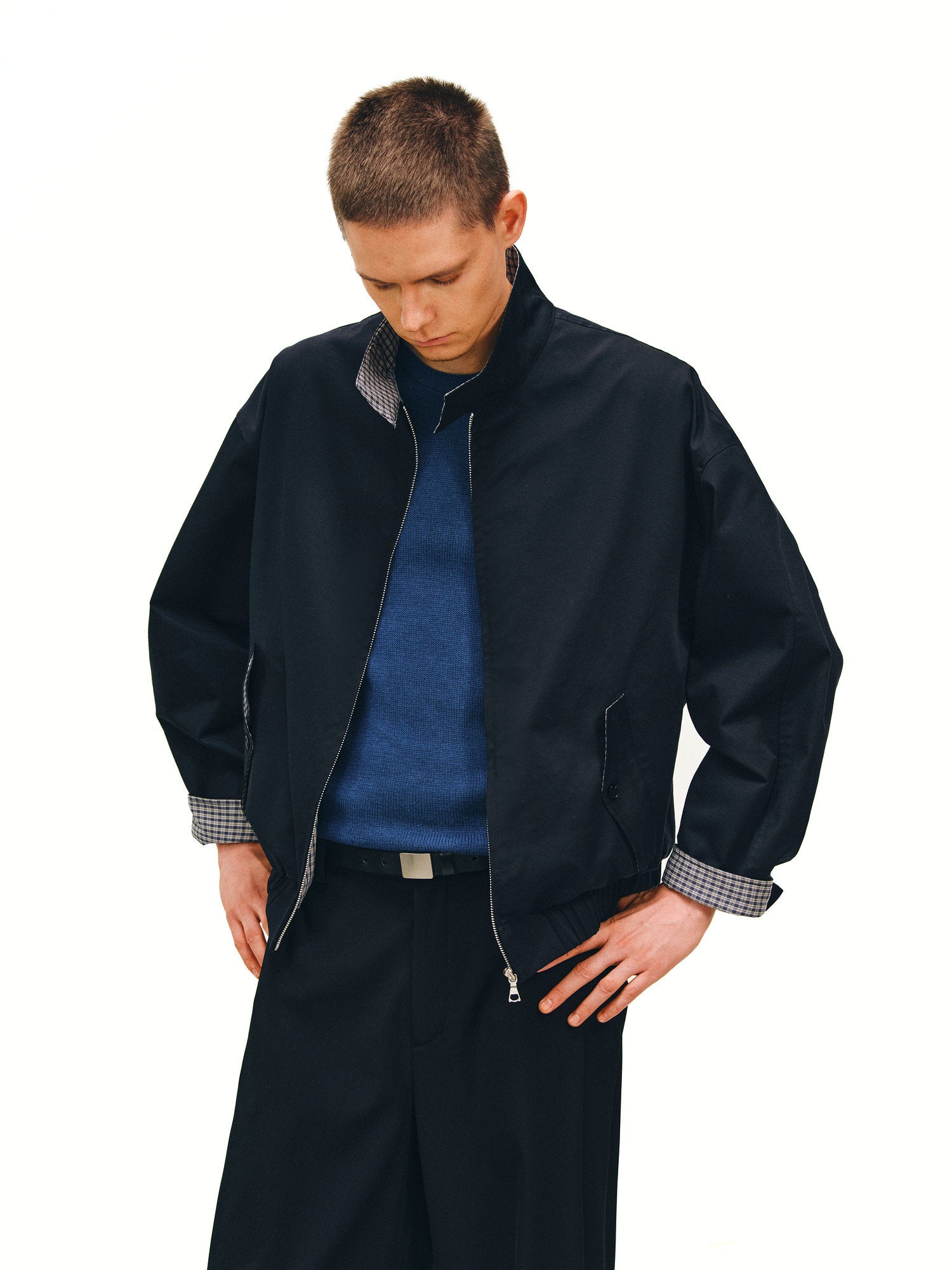 Checkered Patchwork Harrington Jacket