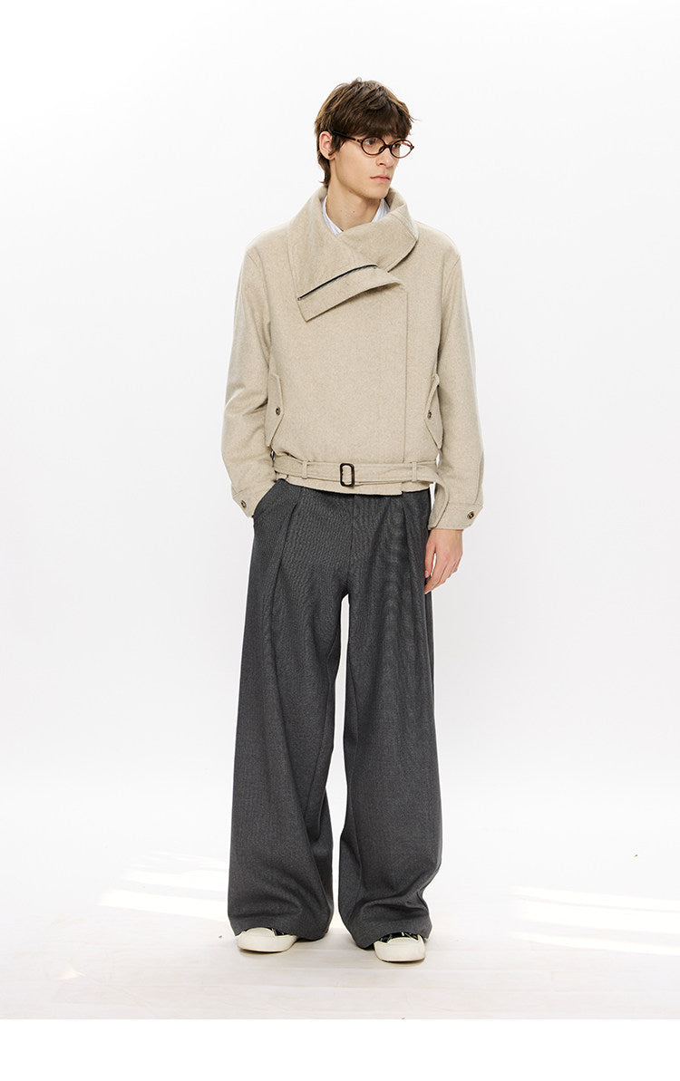 Diagonal Zipper Wool Jacket