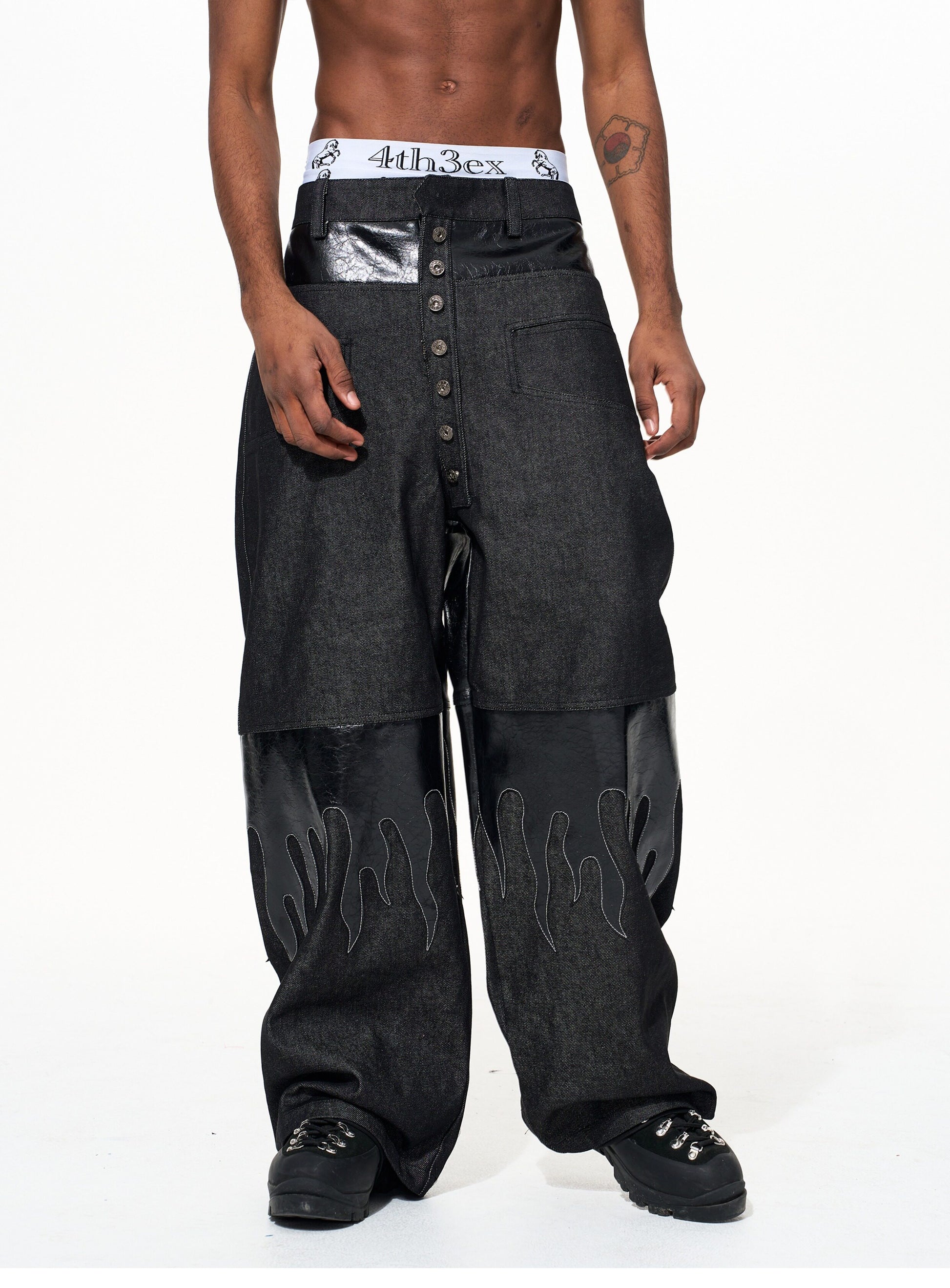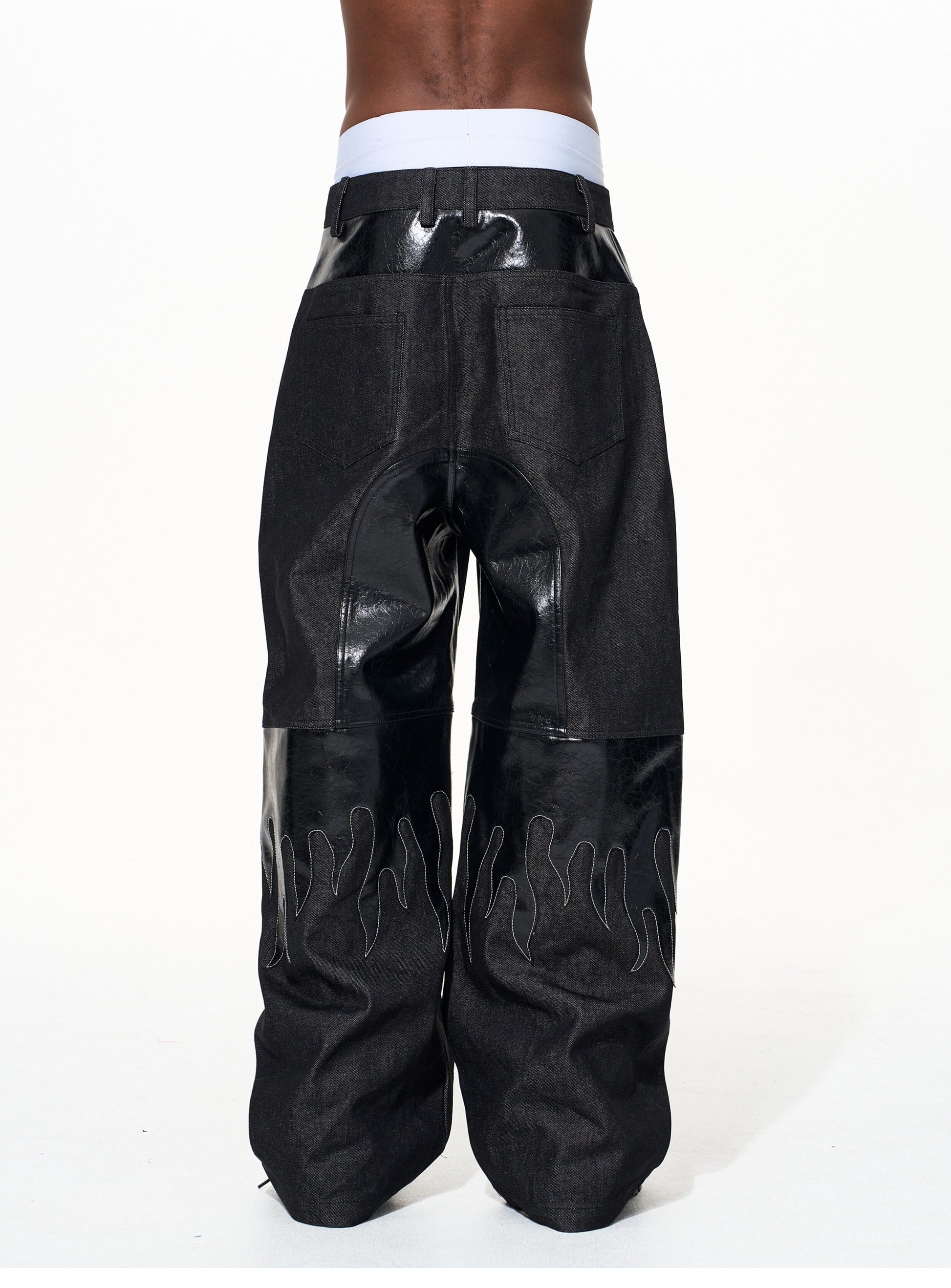 Flame Pattern Leather Jeans