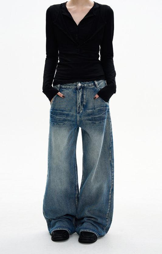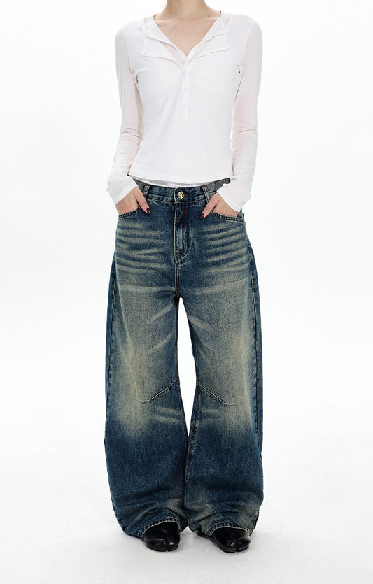 Loose Fit Retro Wash Jeans