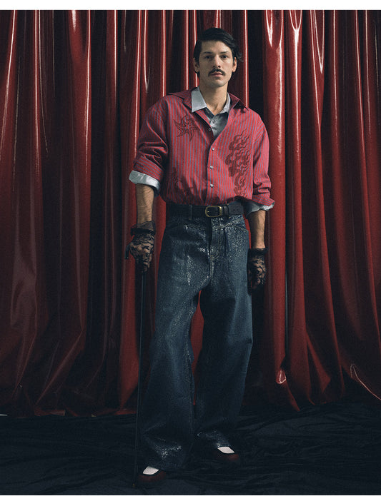 Paint Splatter Design Curve Blade Jeans