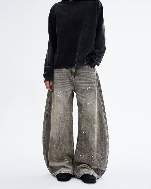 Vintage-washed loose jeans