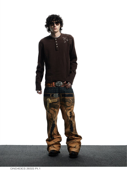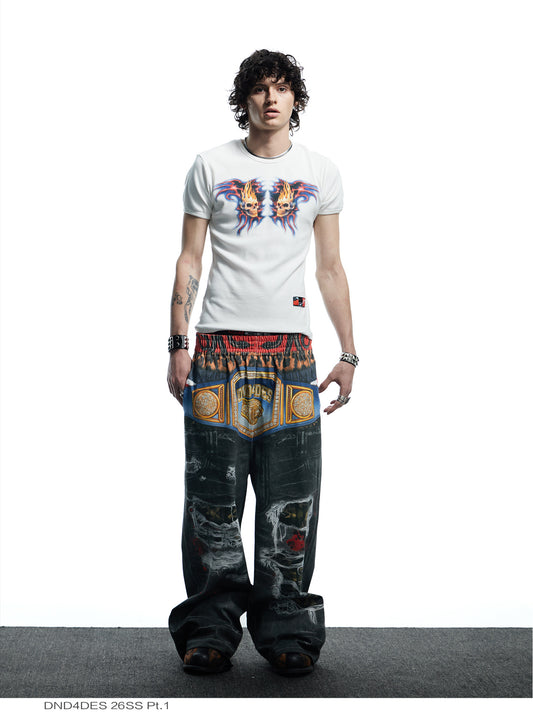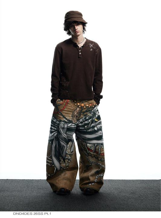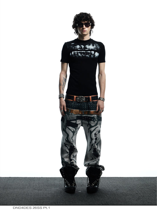 Distressed Finish 3D Printed Baggy Jeans