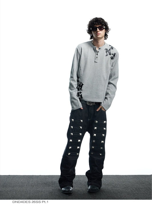 Punk Street Stand Collar Denim Pants