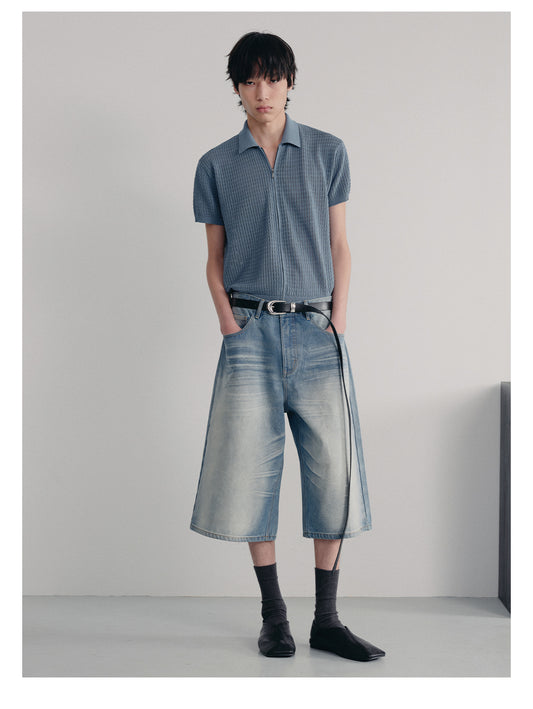 Ice Blue Denim Cropped Pants