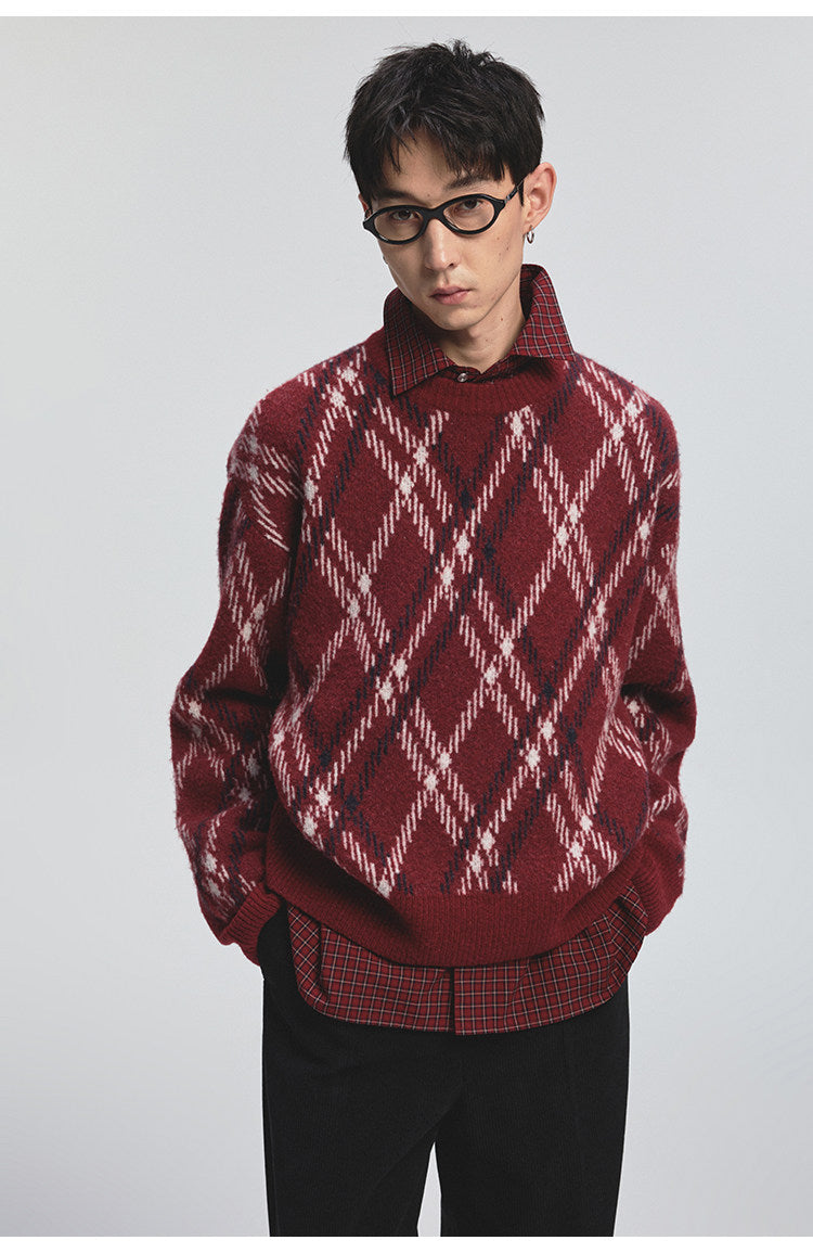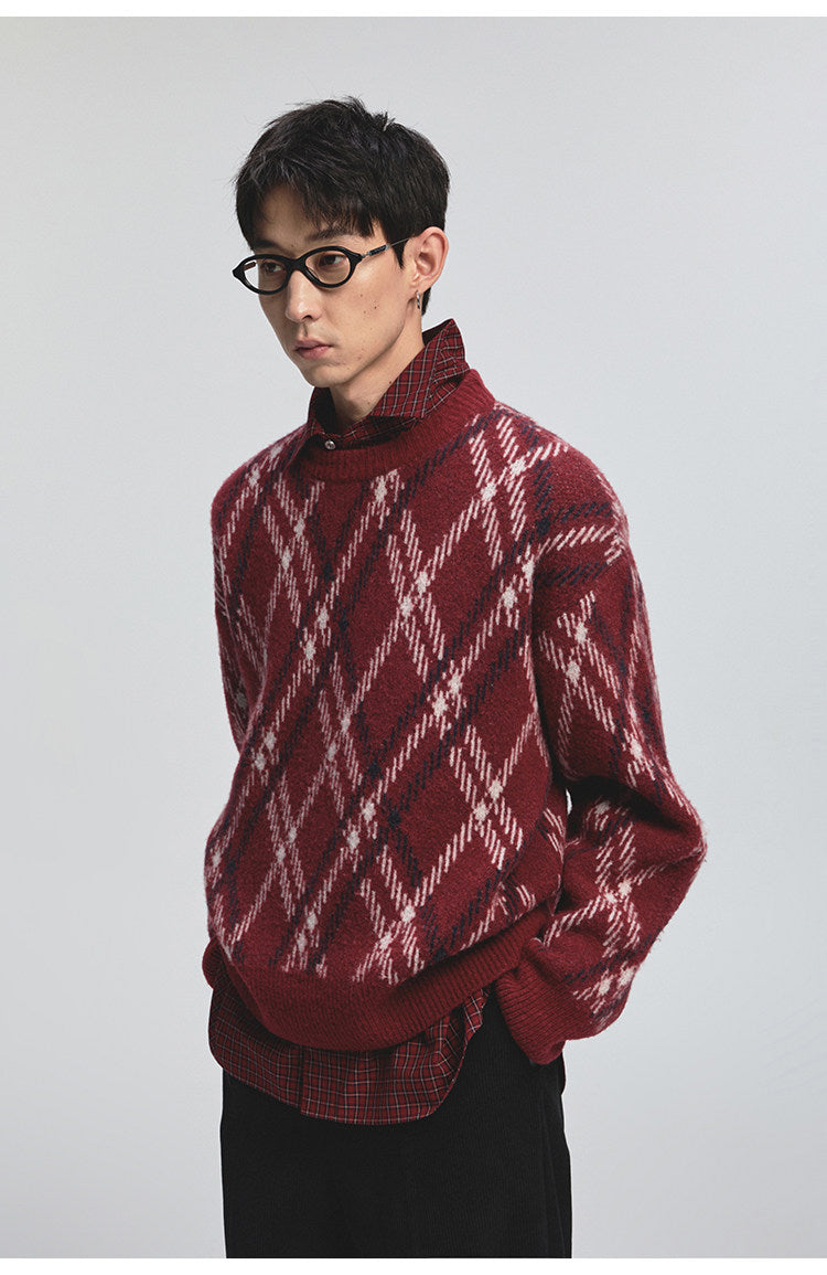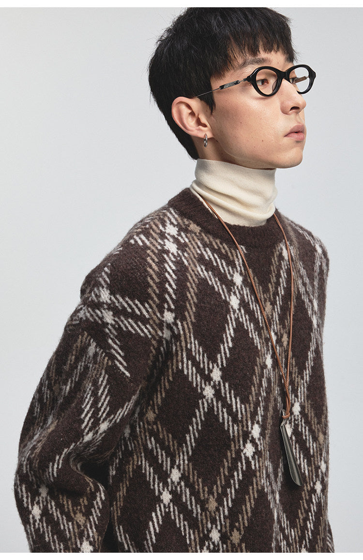 Diamond Pattern Crew Neck Sweater