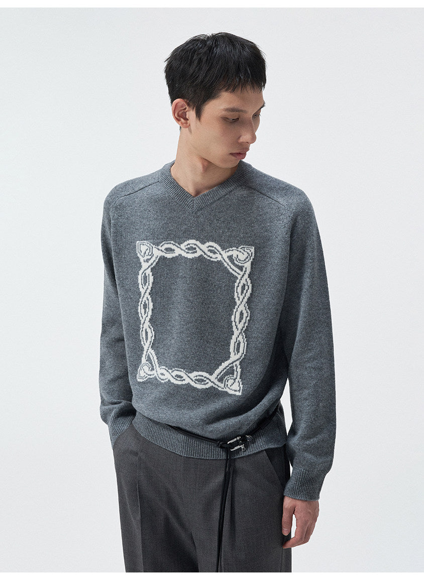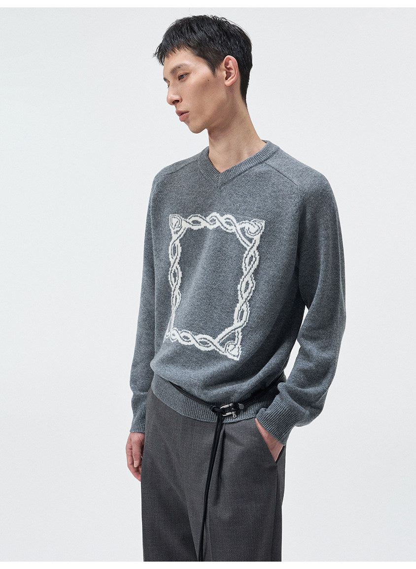 Original Knot Jacquard V-Neck Sweater