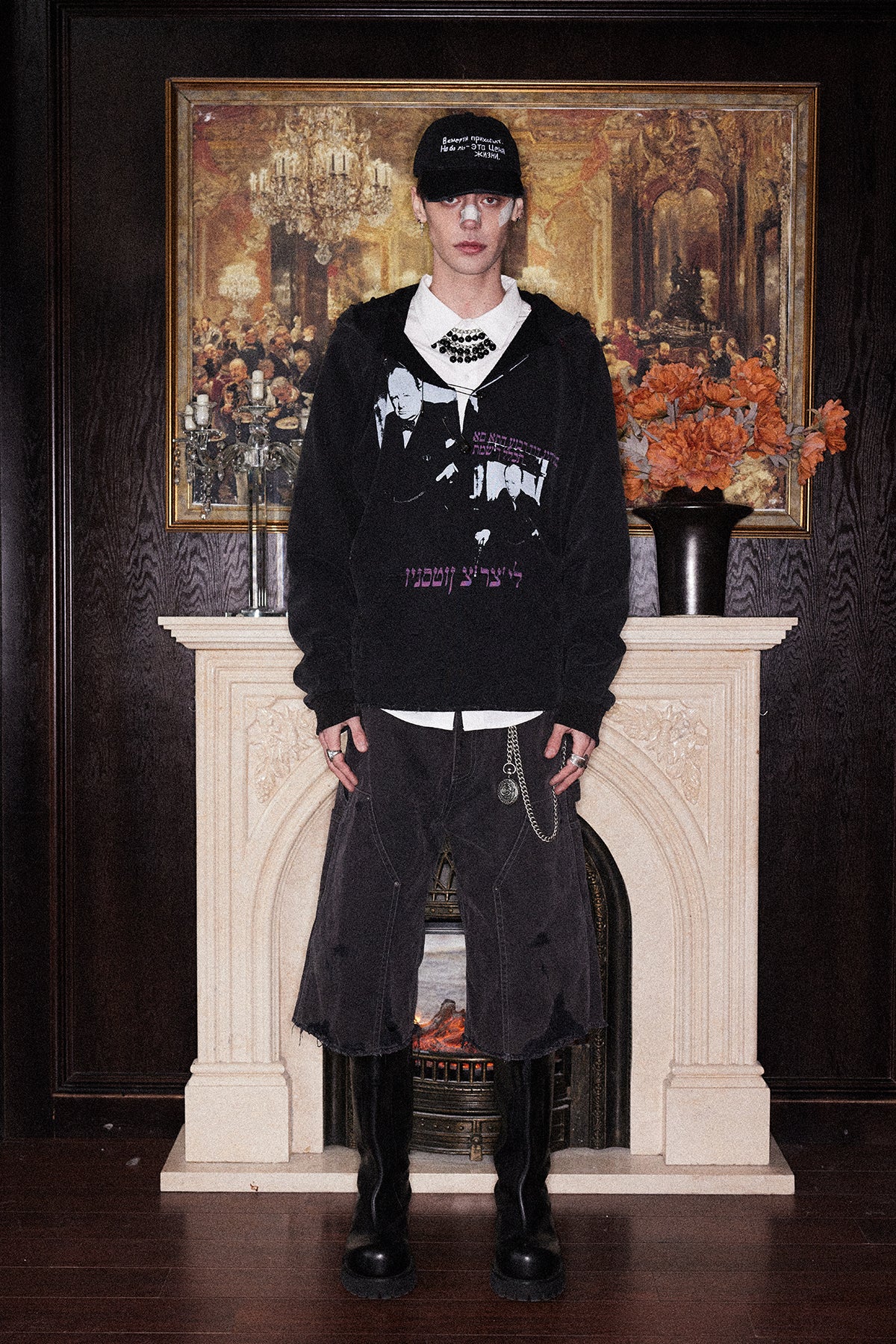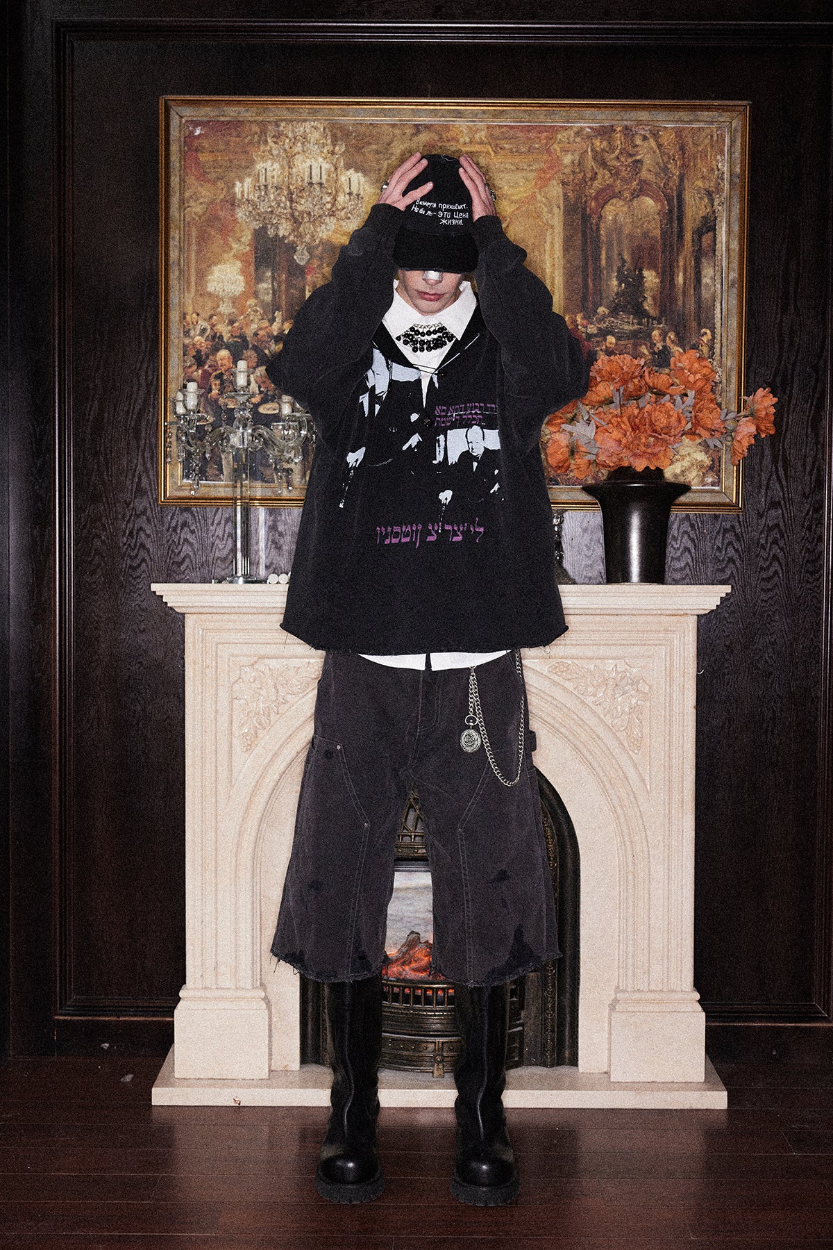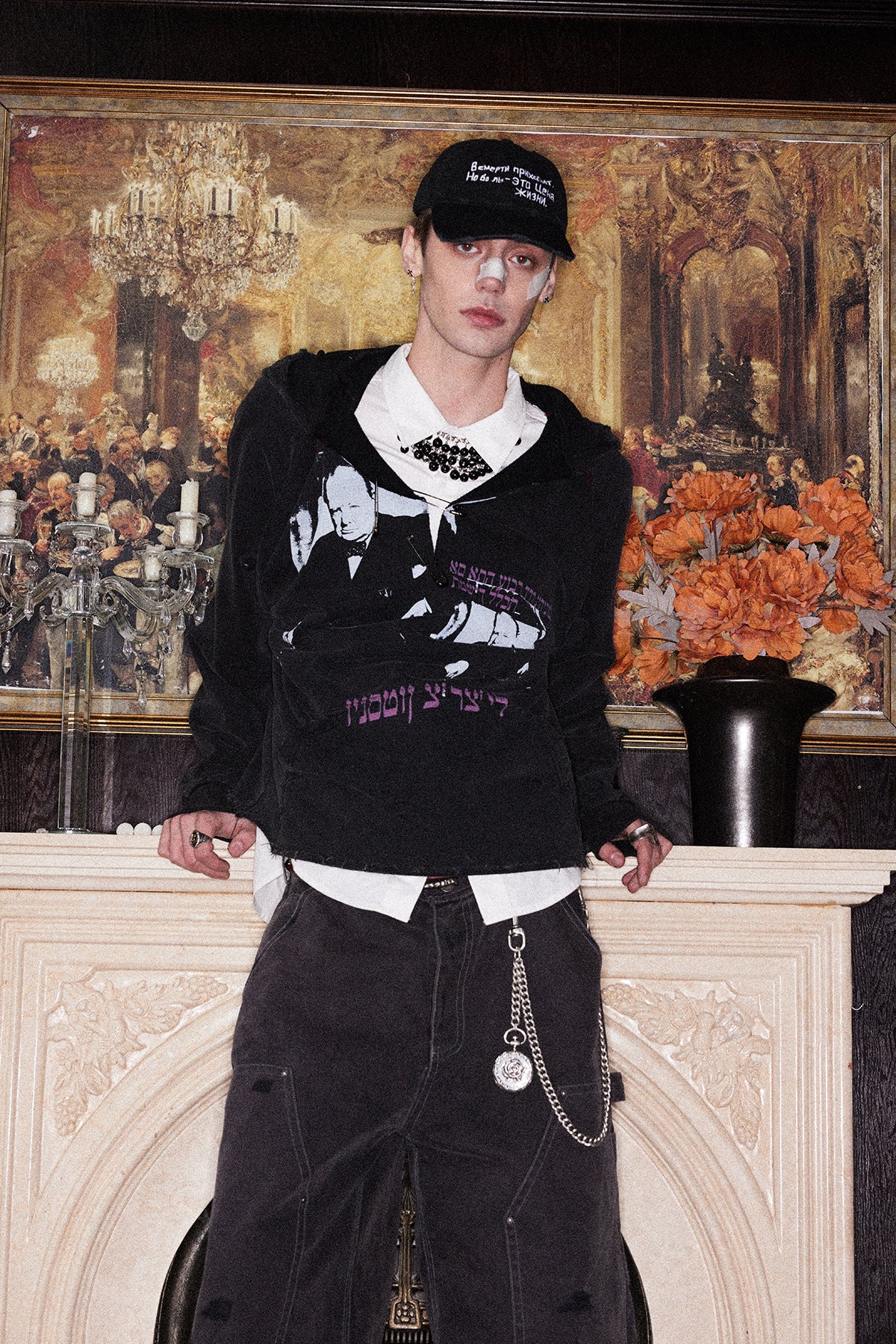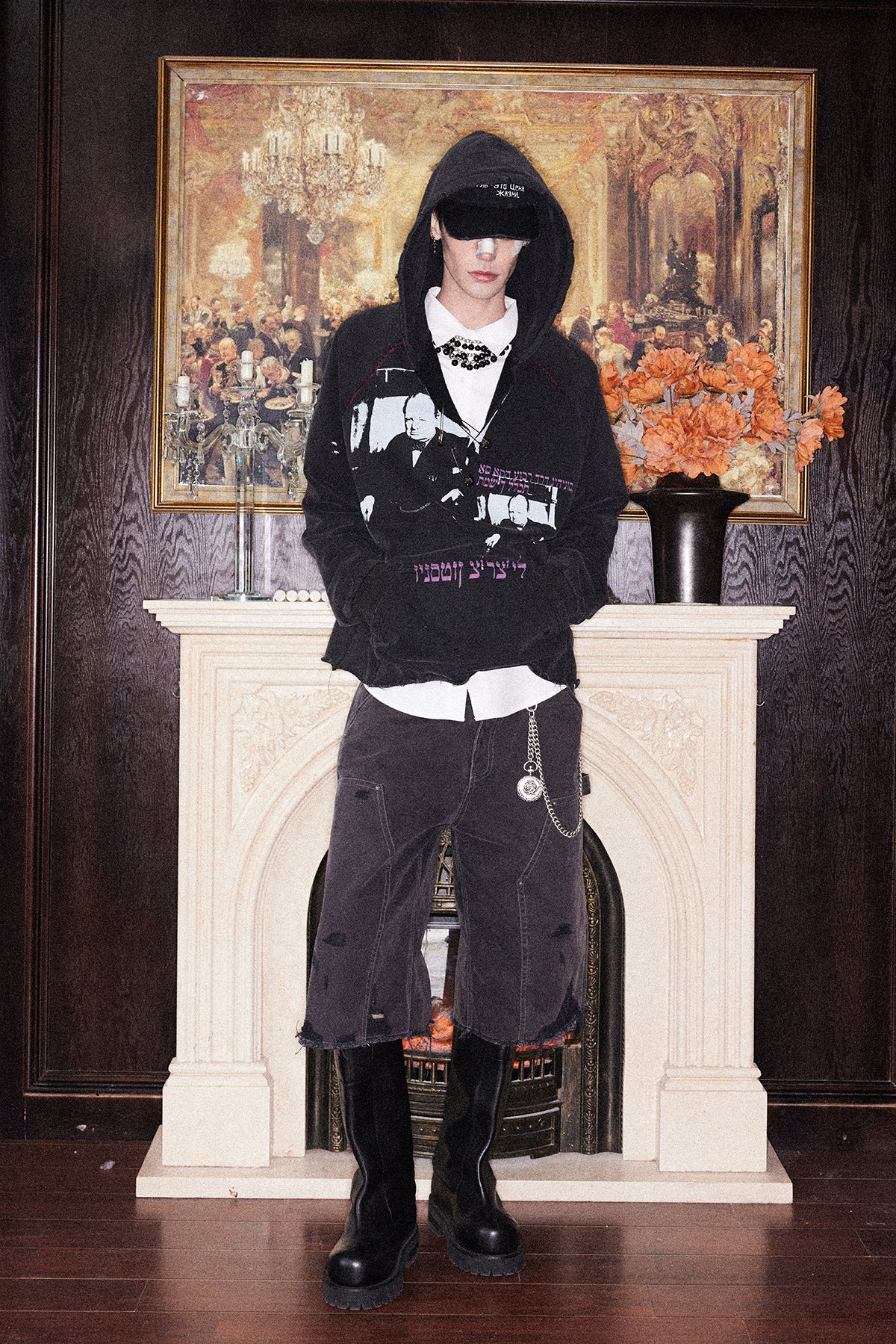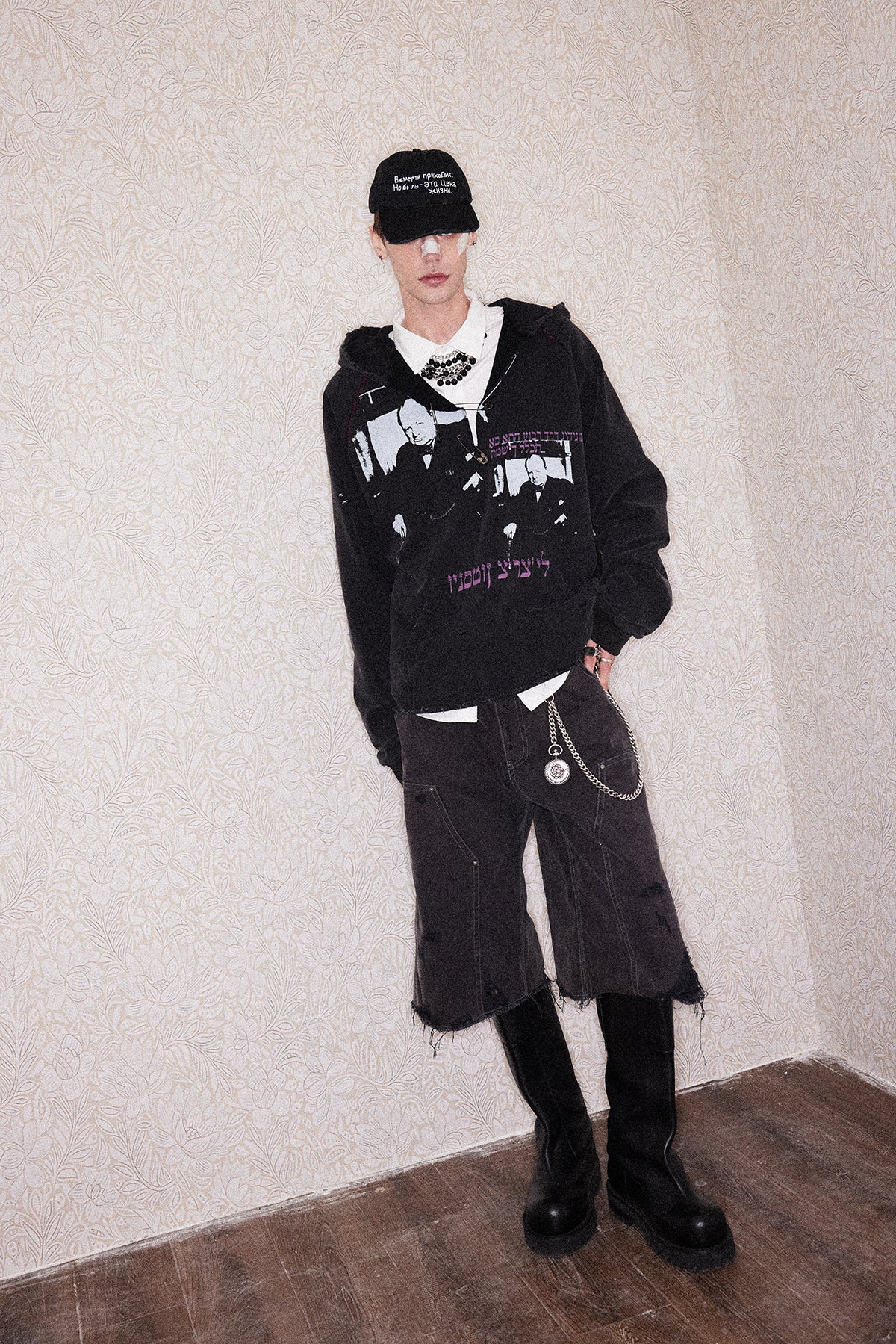 Printed Washed Damaged Hoodie
