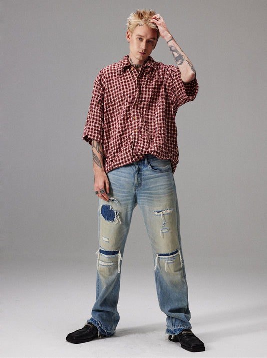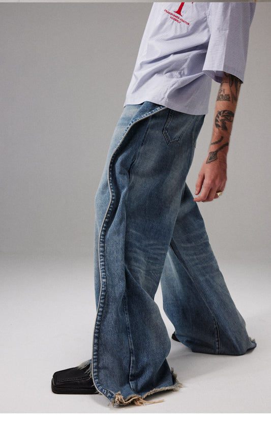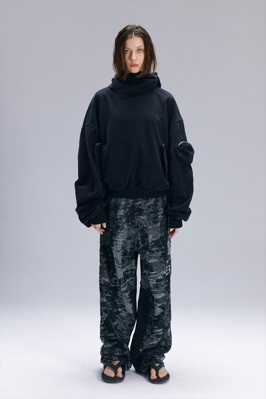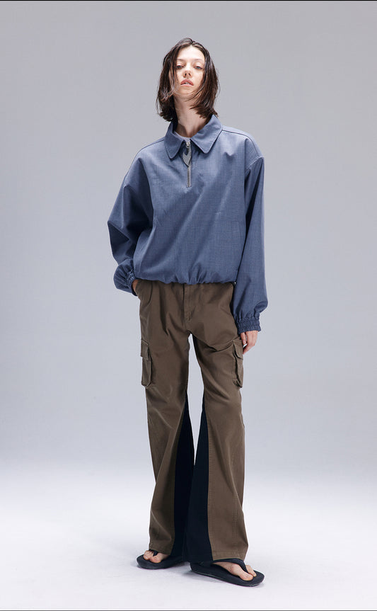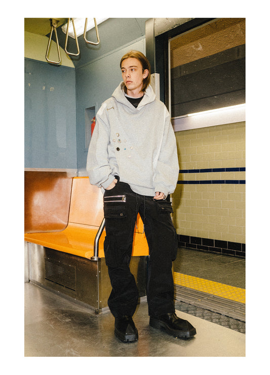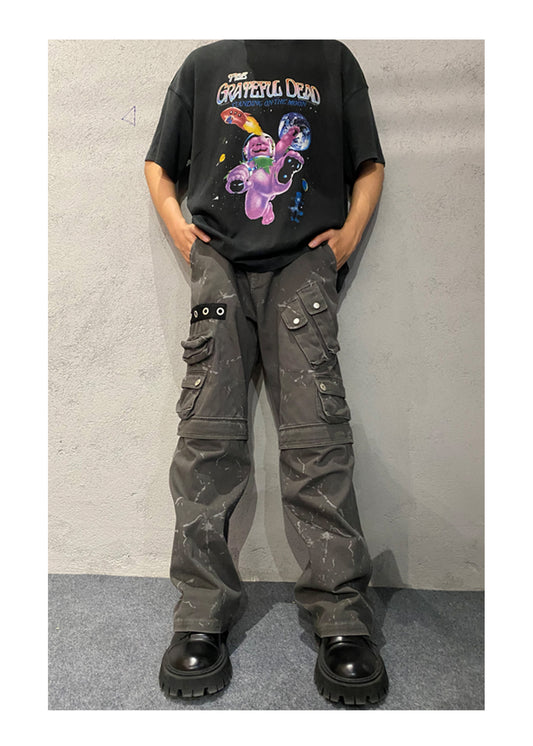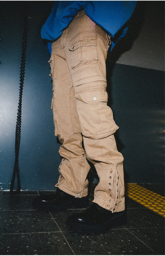 Thick nylon pleated textured multi-pocket zipper loose-leaf cargo pants
